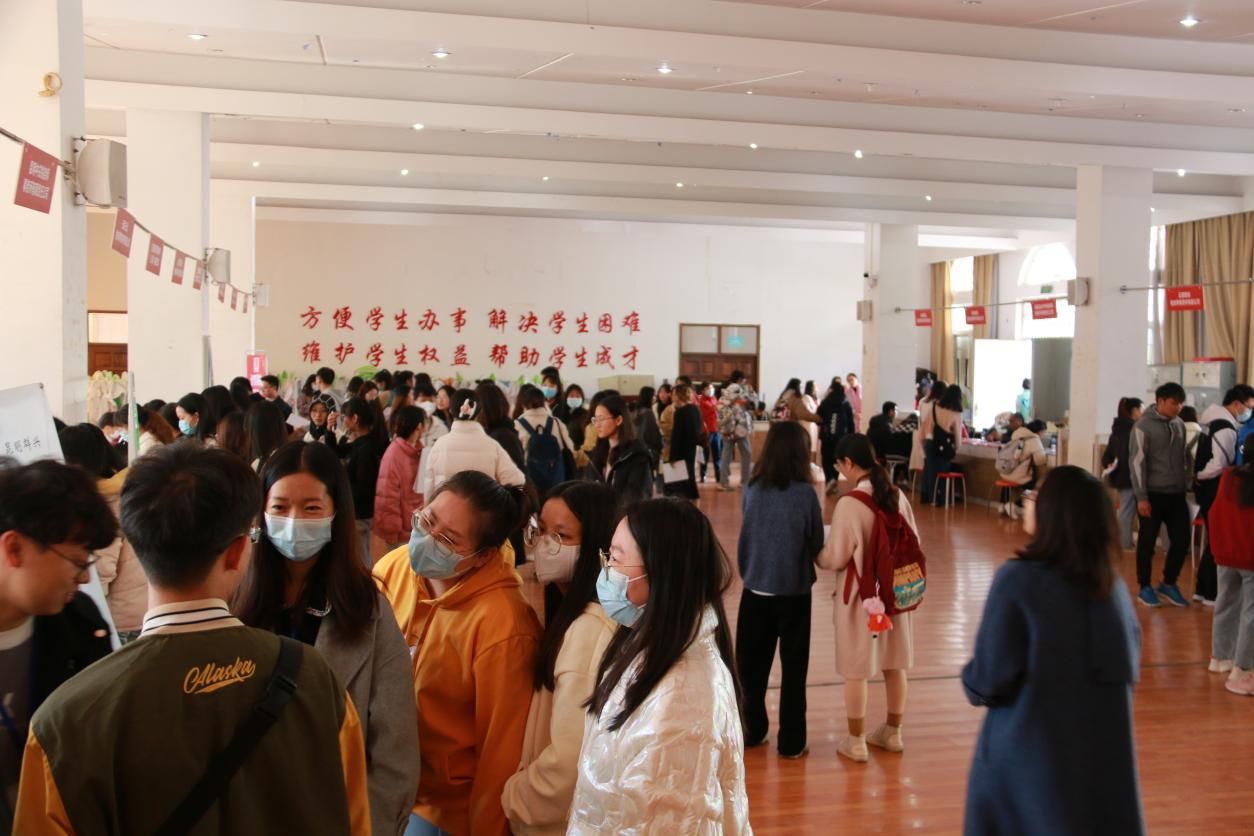 招聘会现场人头攒动,气氛热烈,参会学生积极与招聘人员交流互动,踊跃投递个人简历。此次招聘会为“2022届毕业生校园招聘月”系列活动之一。