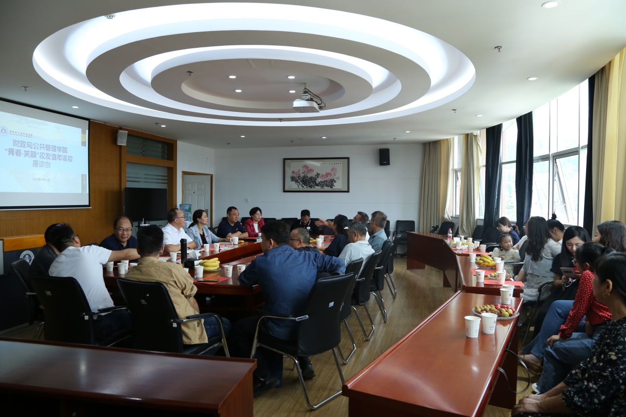 9月16日上午,财政与公共管理学院在逸夫楼923召开“青春·笑颜”校友值年返校座谈会。财政与公共管理学院院长缪小林、党委副书记王晓芬、副院长和立道,财税系系主任闻勇、公共事业管理与社会保障系系主任木薇和专任教师马克继,与基建8231、社保09-1班返校校友相聚一堂,畅叙师生校友情。