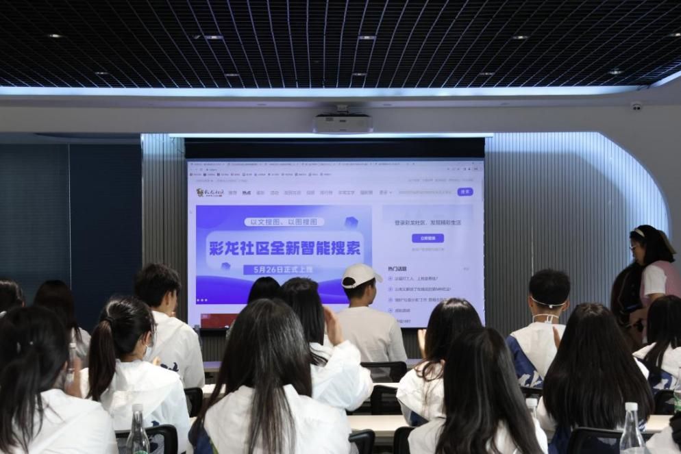 昆明信息港副总经理何早阳带领同学们参观了公司各个部门,并详细介绍了运营情况、传播效果及各部门职能。编辑王素晶介绍了昆明信息港自主开发的彩龙社区APP,鼓励同学们积极参加相关活动,丰富课余生活。编辑薛江涛围绕新闻稿写作和微信公众号的运营两方面进行了讲解,他详细介绍了新闻的体裁、特点,并运用案例讲述了新闻导语的写作方式,新闻稿配图的选取技巧,制作推文可运用的工具等知识。编导张玉玲以短片为例,为同学们讲解了视频策划、拍摄、剪辑、包装的全过程,让同学们了解了视频制作的前期准备和后期制作要点。培训后,同学们也针对积累写作词汇,日常视频剪辑工具等问题进行了提问交流。