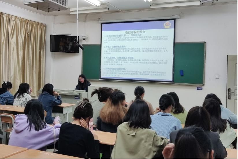 普劲松以“共筑安全屏障 构建和谐校园”为主题,紧紧围绕人身安全、交通安全和财产安全等三个方面开展讲座。他重点从电信网络诈骗相关知识、防范方法及应对措施、国家相关的法律法规、安全提示等方面对防范诈骗进行讲解,强调防范诈骗必须做到“四要四不要”“六个一律”,并向大家讲解分析了校园典型的诈骗案例。他强调,每位同学都是自身安全的第一责任人,要强化安全意识,筑牢安全底线。