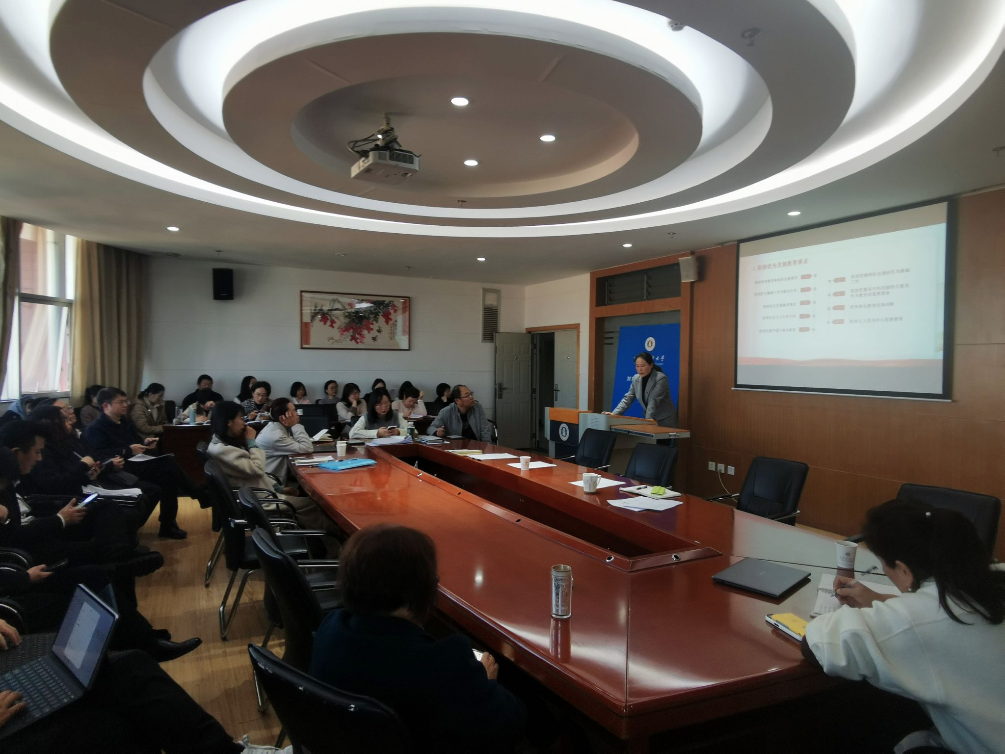 11月14日下午,财政与公共管理学院举行党委理论学习中心组2024年第八次集体学习暨教职工理论学习会,深入学习贯彻习近平总书记关于教育的重要论述。会议由党委副书记王晓芬主持。