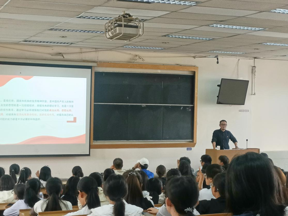 党课由学院组织员李昊哲主讲,以“对党的认识”为切入点,通过问答、互动的方式,引导同学们理解和领悟“中国共产党为什么能”“马克思主义为什么行”“中国特色社会主义为什么好”。围绕“中共党员是什么样的”“为什么要申请入党”两个核心问题,详细讲解党员的标准和端正入党动机的内涵,激励同学们以实际行动和优异成绩争取早日加入党组织。