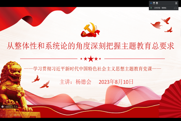 2023810日,财政与公共管理学院本科生第三党支部组织支部同志在线上开展学习贯彻习近平新时代中国特色社会主义思想主题教育党课,本次党课由支部书记杨德会同志主讲。