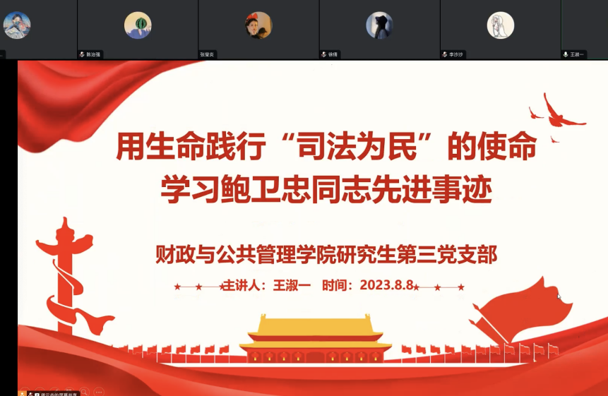 2023年8月8日下午,财政与公共管理学院研究生第三党支部召开线上支部大会,会议由支部副书记龚云垚同志主持。