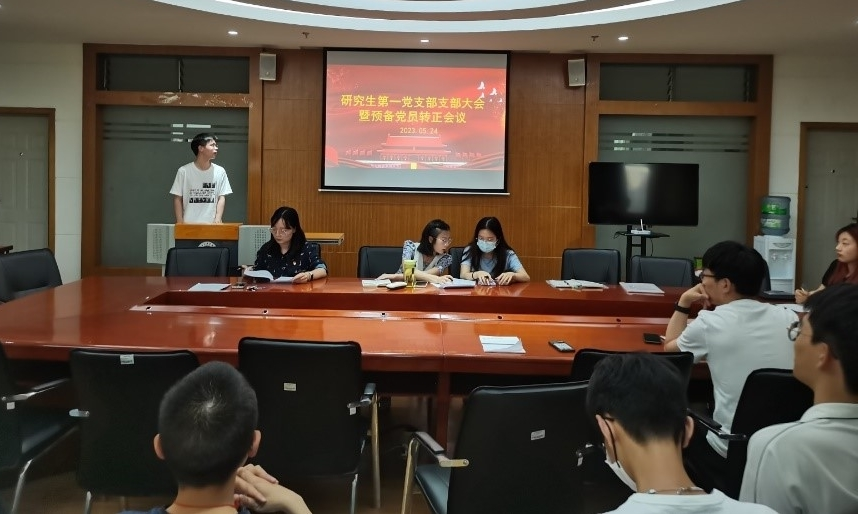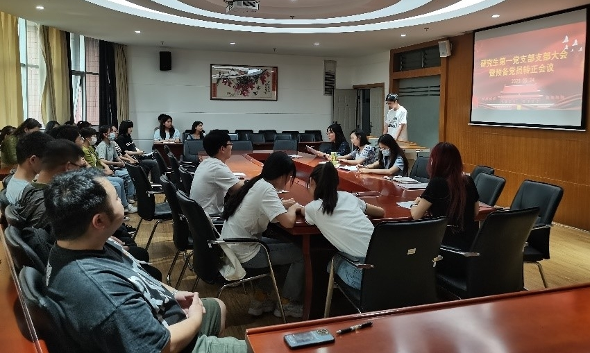 2023年5月24日,财政与公共管理学院研究生第一党支部在逸夫楼923会议室召开支部党员大会,会议由支部书记赵珺蓉主持,全体党员参加。