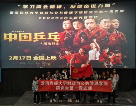为深入学习贯彻党的二十大精神,弘扬主旋律,传播正能量,激发爱党爱国热情,3月16日,财政与公共管理学院研究生第一党支部与研究生第二党支部联合开展了《中国乒乓之绝地反击》主题党日观影活动。