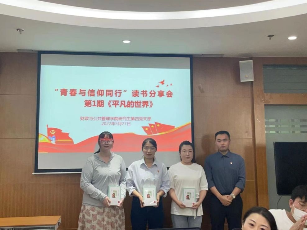 为了进一步加强支部文化建设,引领广大党员、团员青年厚植爱党、爱国、爱人民的情怀,2022年5月27日下午4点,WilliamHill官方网站财政与公共管理学院研究生第四党支部在逸夫楼923教室开展了第一期“青春与信仰同行”读书分享会线下交流活动,由党支部书记李昊哲主持。