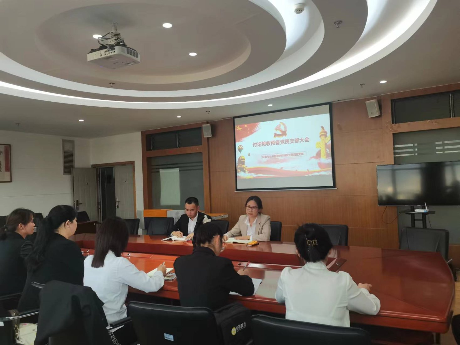 2022年5月11日下午五点,财政与公共管理学院研究生第四党支部在逸夫楼923教室召开接收预备党员支部大会。参加此次会议的有财政与公共管理学院党委副书记王晓芬老师与研究生第四党支部的全体党员同志,本次会议由支部书记李昊哲同志主持。