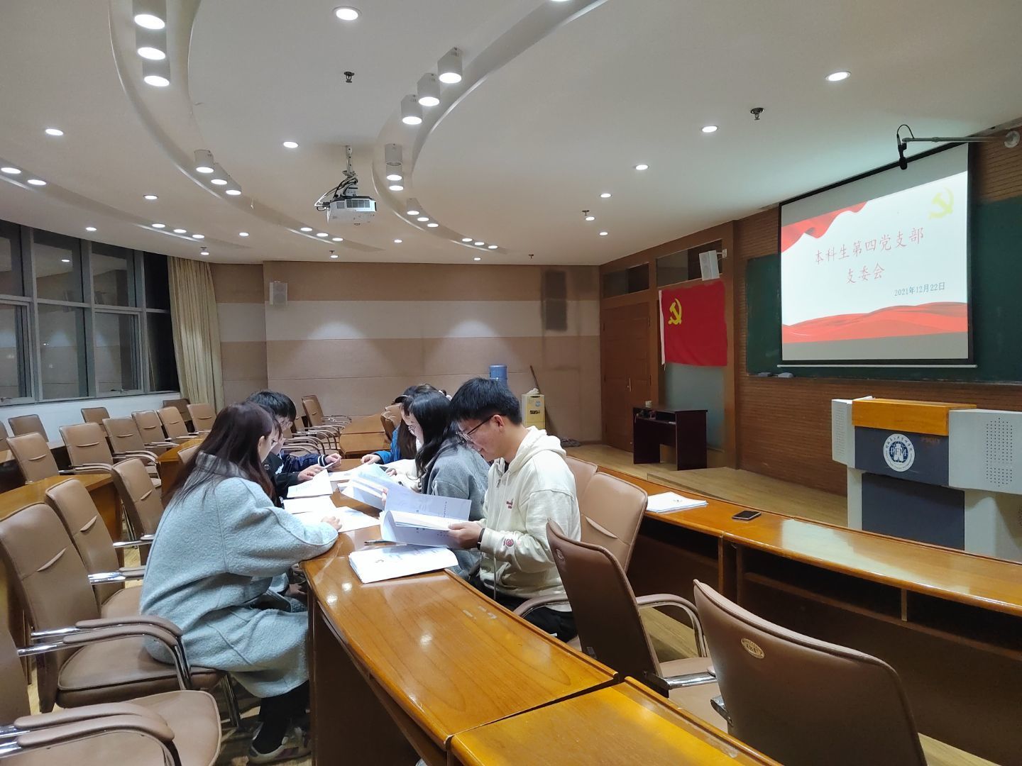 2021年12月22日晚上20:00-21:00,财政与公共管理学院本科生第四党支部在南院逸夫楼707召开12月份支委会。会议由支部书记葛译遥老师主持。会议的主题是:总结支部本年度工作,找出本年工作中存在的问题,提出下年整改意见。