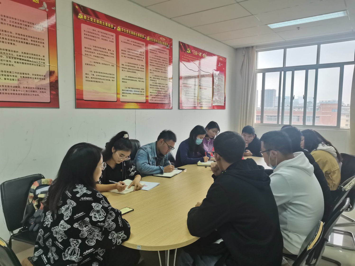 2021年11月9日下午18点,财政与公共管理学院研究生第四党支部在南苑逸夫楼703会议室召开党内外群众意见座谈会,关于王炜东同志转为正式党员事项广泛征求党员和群众的意见和建议。