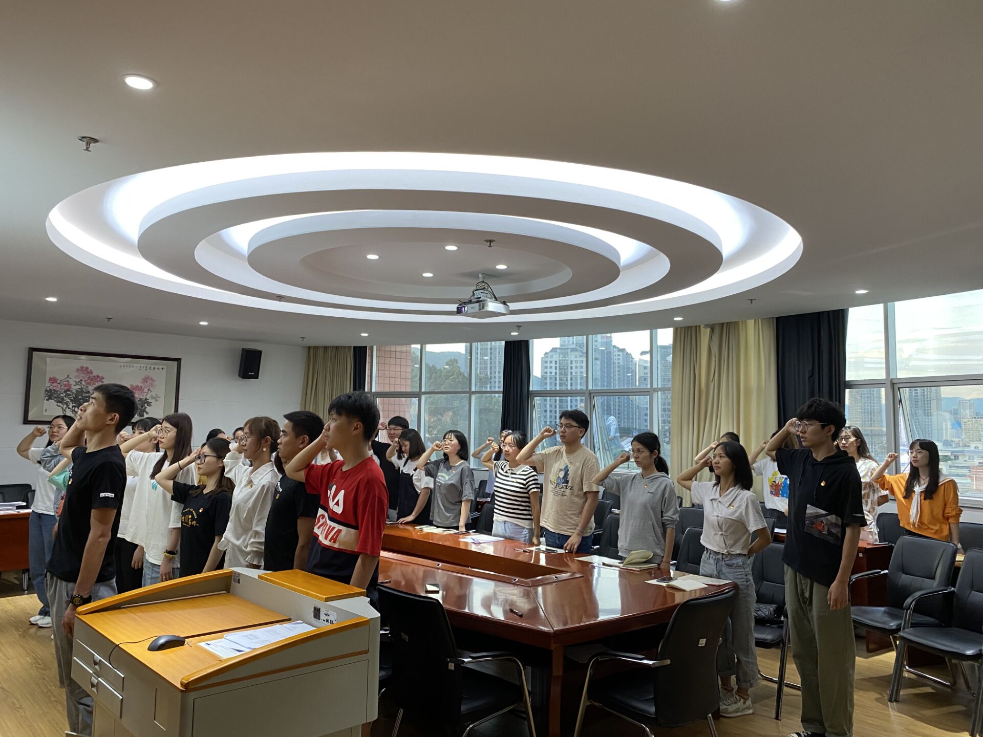 2021526日,本科生第四党支部在逸夫楼923召开预备党员转正大会,本次会议应到正式党员9名,实到正式党员9名,实到正式党员人数超过应到会有表决权党员半数,符合会议流程。
