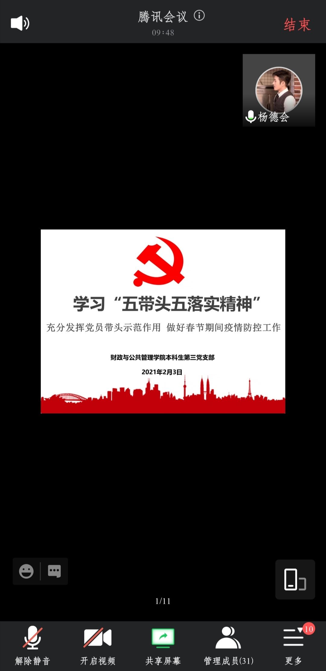 2021年1、2月寒假期间,财政与公共管理学院本科生第三党支部组织支部党员同志开展了内容丰富的线上学习活动,包括观看《清流毒——云南在行动》警示片、学习“五带头五落实”精神、“传递正能量”等活动。