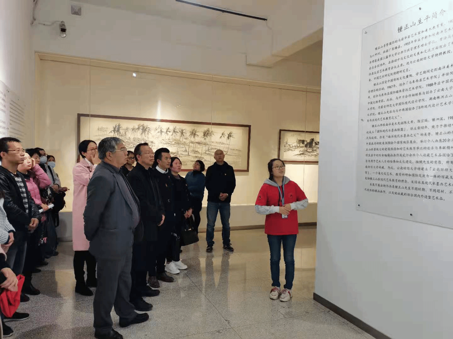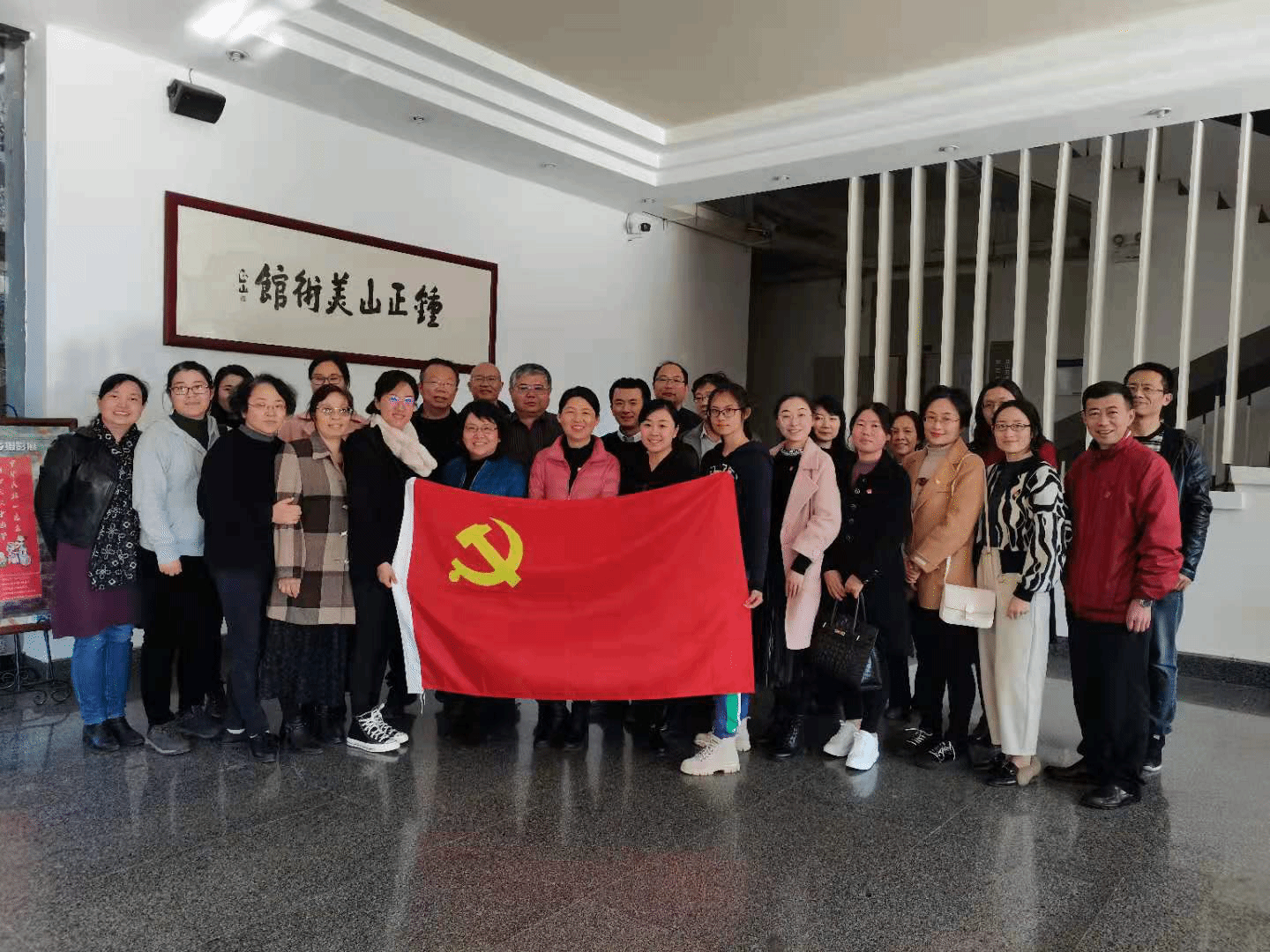 在钟正山美术馆义务讲解员的引导下,两支部全体党员首先浏览参观了钟正山美术馆的藏品,从一楼的钟正山先生毕生的百余幅精品画作,到二楼钟正山先生捐赠的张大千、李可染、于右任等著名画家的十余幅真迹,再到正在展览的学校摄影大赛获奖优秀作品,充分领略现代水墨画艺术精神的同时,两支部全体党员被钟正山先生对美育事业的理想抱负所感动。