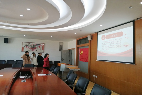 2020 1215日,财政与公共管理学院本科生第一党支部在逸夫楼923召开支部大会,组织排南央等新发展的三名预备党员面对党旗进行庄严宣誓。