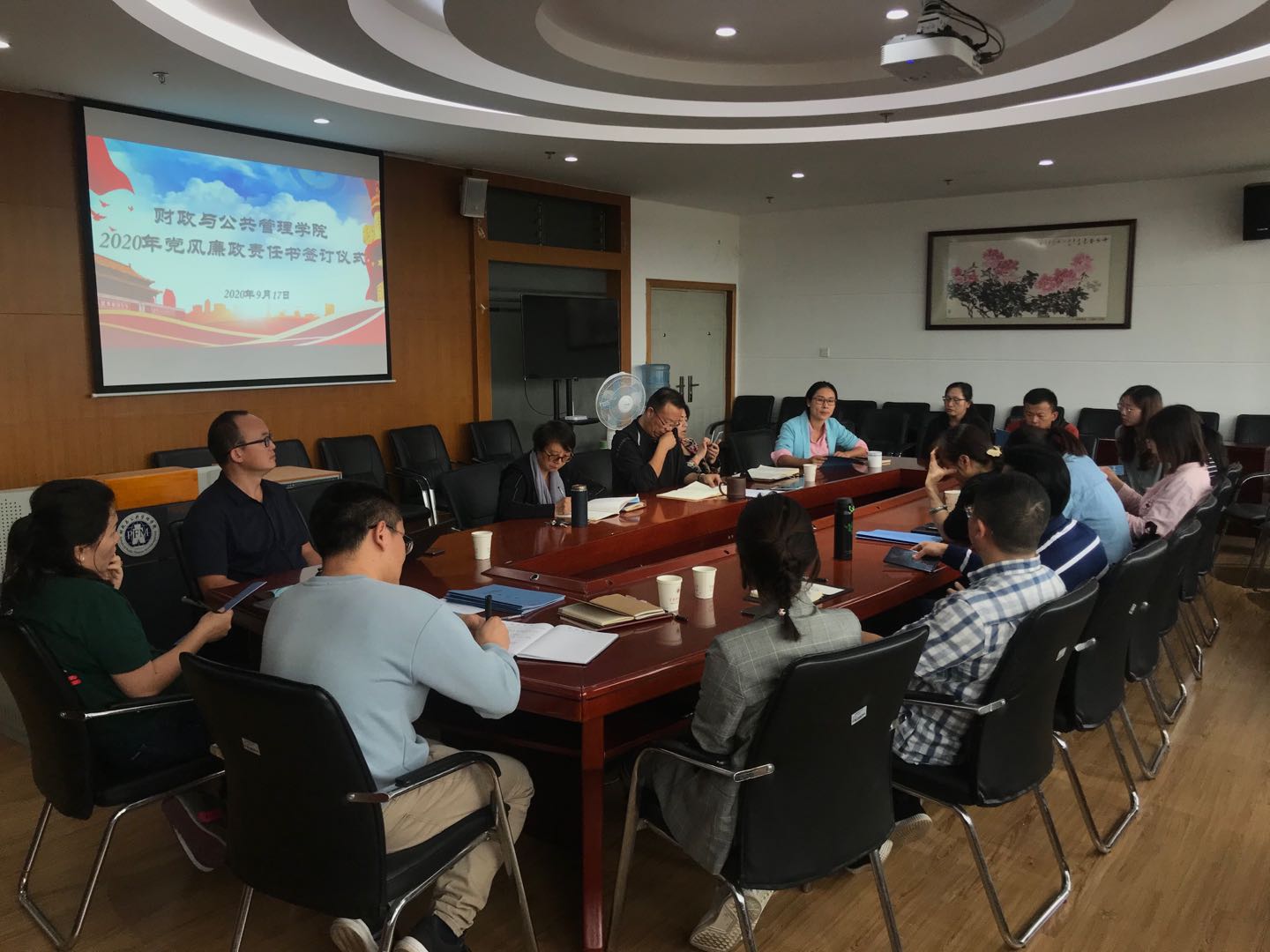 2020年9月17日,财政与公共管理学院党委召开2020年下半年党风廉政建设专题会,学院党委班子成员及李妍院长参加了会议,会议由朱文书记主持。