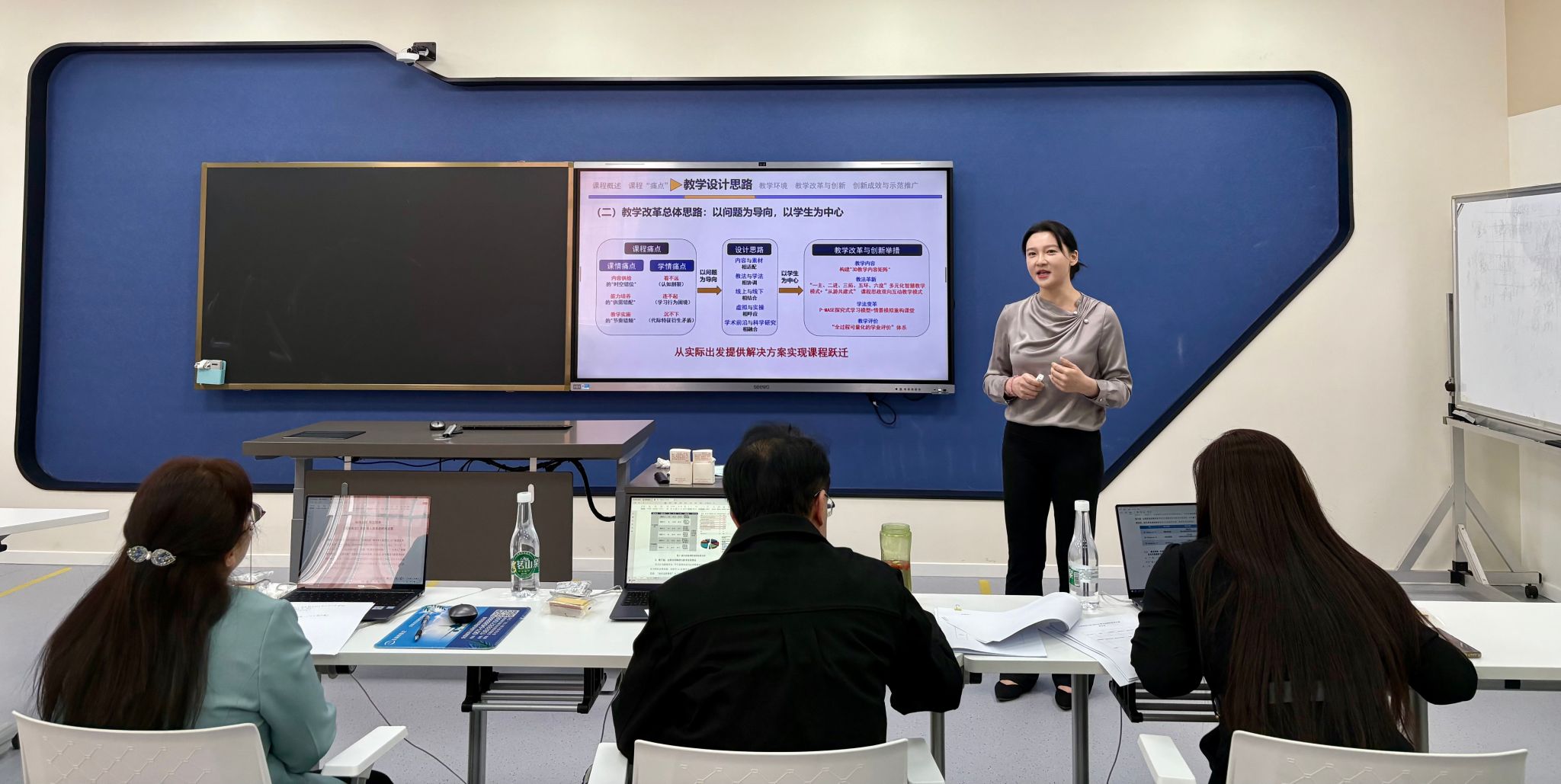 参赛教师精心准备教学设计创新汇报,结合教学大纲与教学实践,深入剖析教学实践中的“真实问题”,聚焦教学内容重构、教学方法创新、教学资源建设、智慧技术赋能、教学评价改革、深化协同育人等方面,提出创新性的解决方案,获得现场评审专家的充分肯定。专家们还为参赛教师逐一指出存在的不足,给予改进提升的宝贵指导意见。