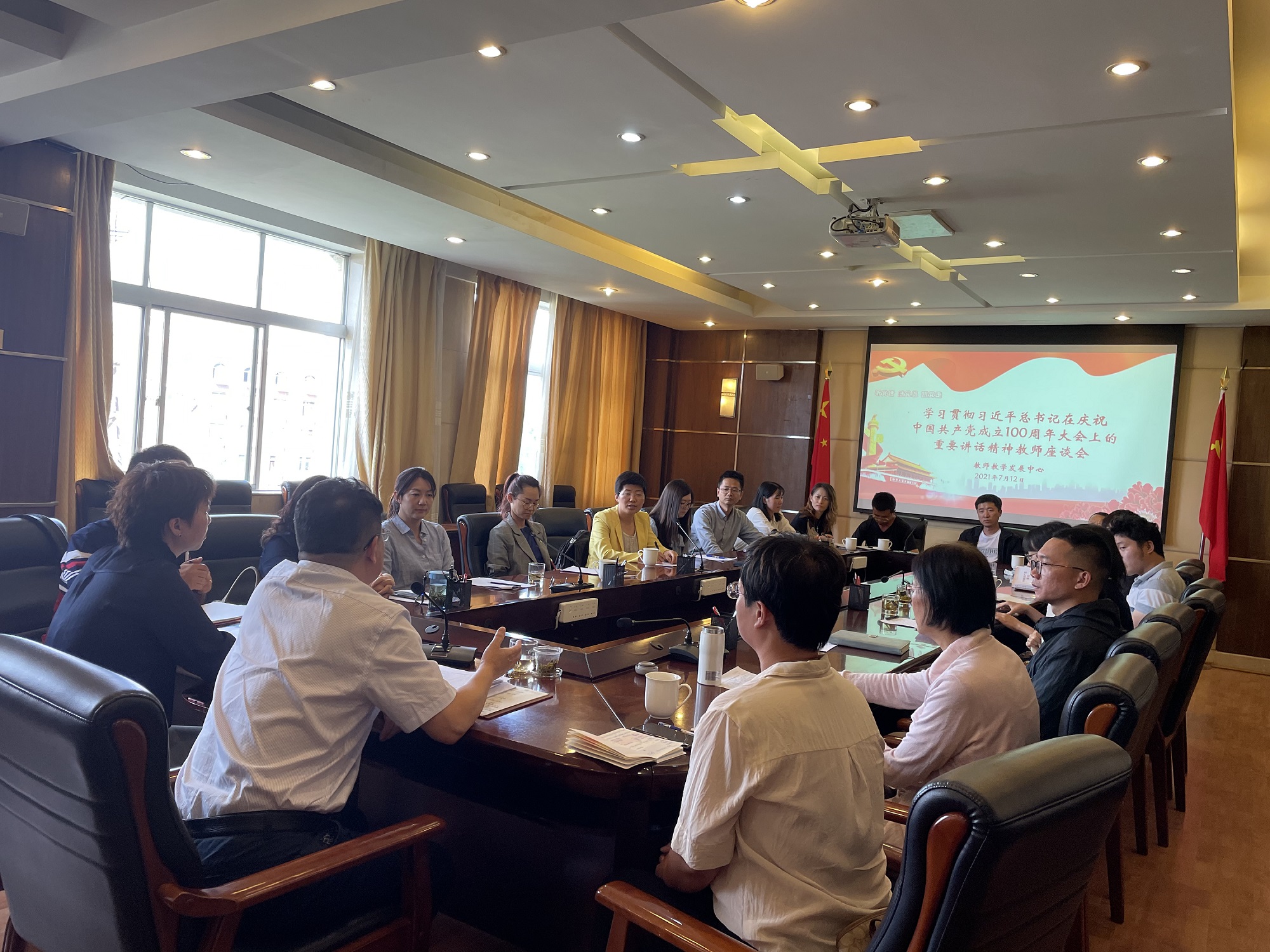 7月12日下午3时,WilliamHill官方网站教师教学发展中心在致远楼506会议室组织召开教师座谈会,深入学习贯彻习近平总书记在中国共产党成立100周年大会上的重要讲话精神。校党委副书记谢昌浩主持会议并领学,19家教学单位和科研院所(中心)党委各选派一线教师代表就学习习近平总书记重要讲话精神交流心得体会。