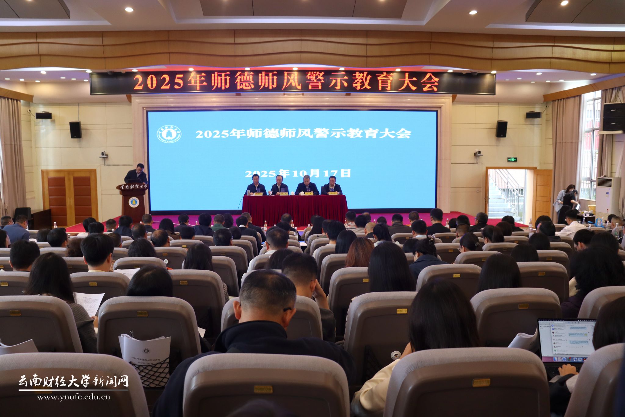 各单位(部门)主要负责人,二级党组织书记、副书记兼纪委书记,各学院(教研室)系主任、教工党支部书记,2025年新入职教师参加师德警示教育大会。