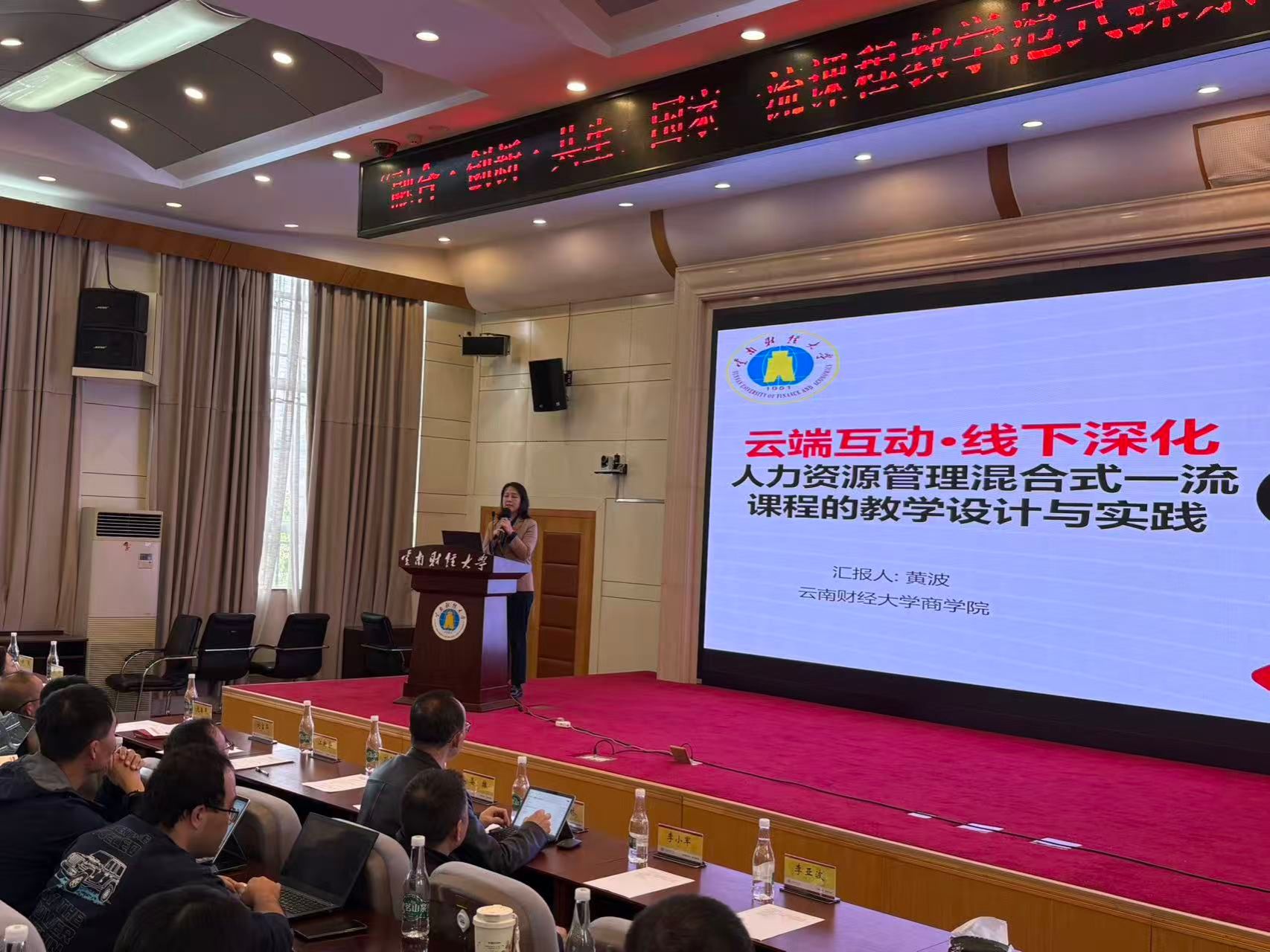 商学院杨玥、唐泳、黄波三位国家级一流课程负责人围绕“以虚促实”“仿真融合”“线上线下混合”三大教学模式,分享了各自的教学创新经验。