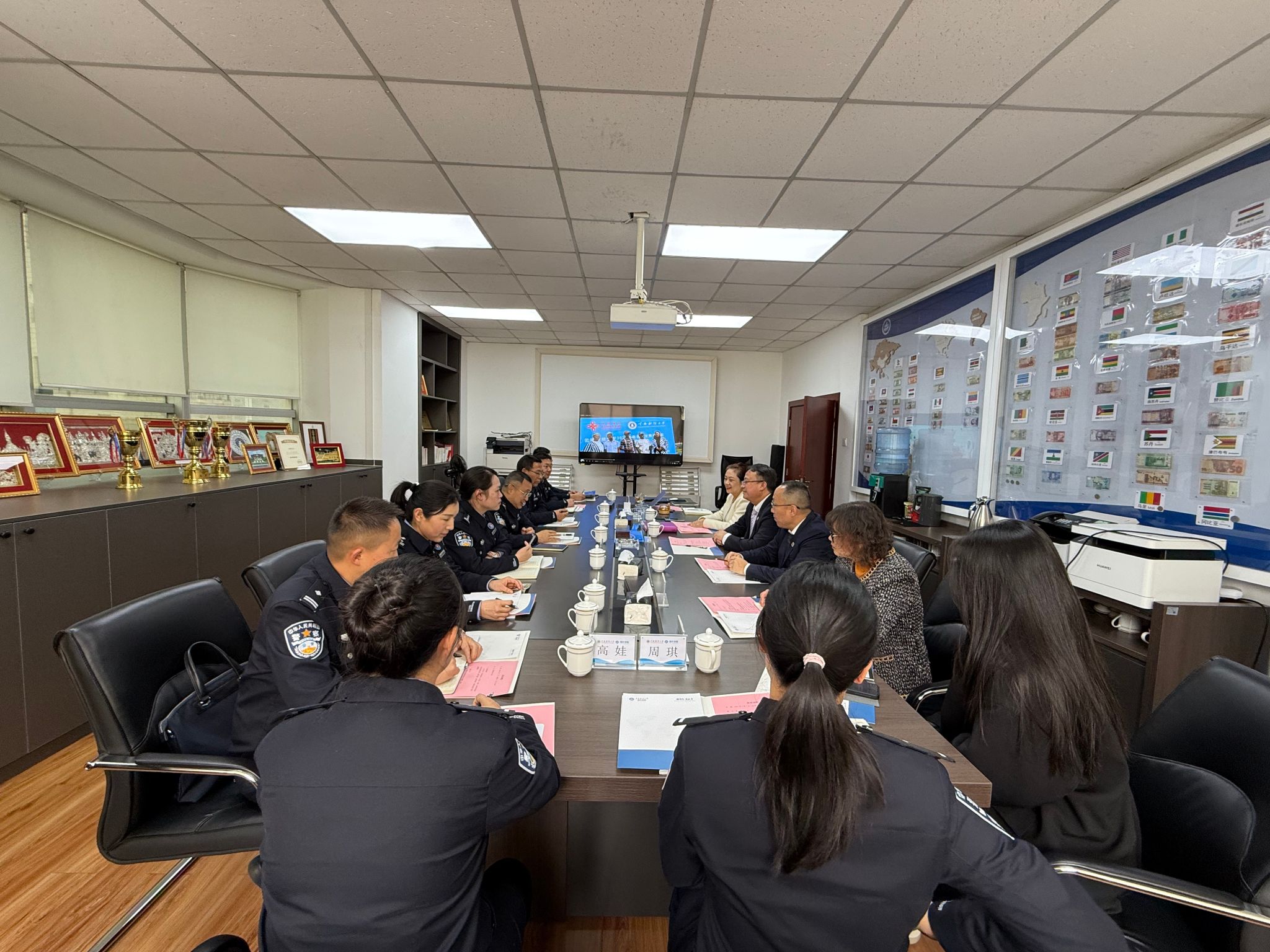 国家移民管理局常备力量第二总队训练处涉外警务战训队、办公室相关负责人,学校对外合作交流处处长、海外学院院长余泳、海外学院副院长李来孺及相关教师参会。