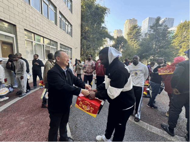 随后,学校领导亲切慰问留校国际学生,向他们发放了精心准备的春节食品。充满年味的食品不仅是一份物质上的馈赠,更是学校对远离家乡的国际学生深深的牵挂,让他们在异国他乡感受到浓浓的春节氛围和学校无微不至的关怀。最后,校领导与留校国际学生合影留念。