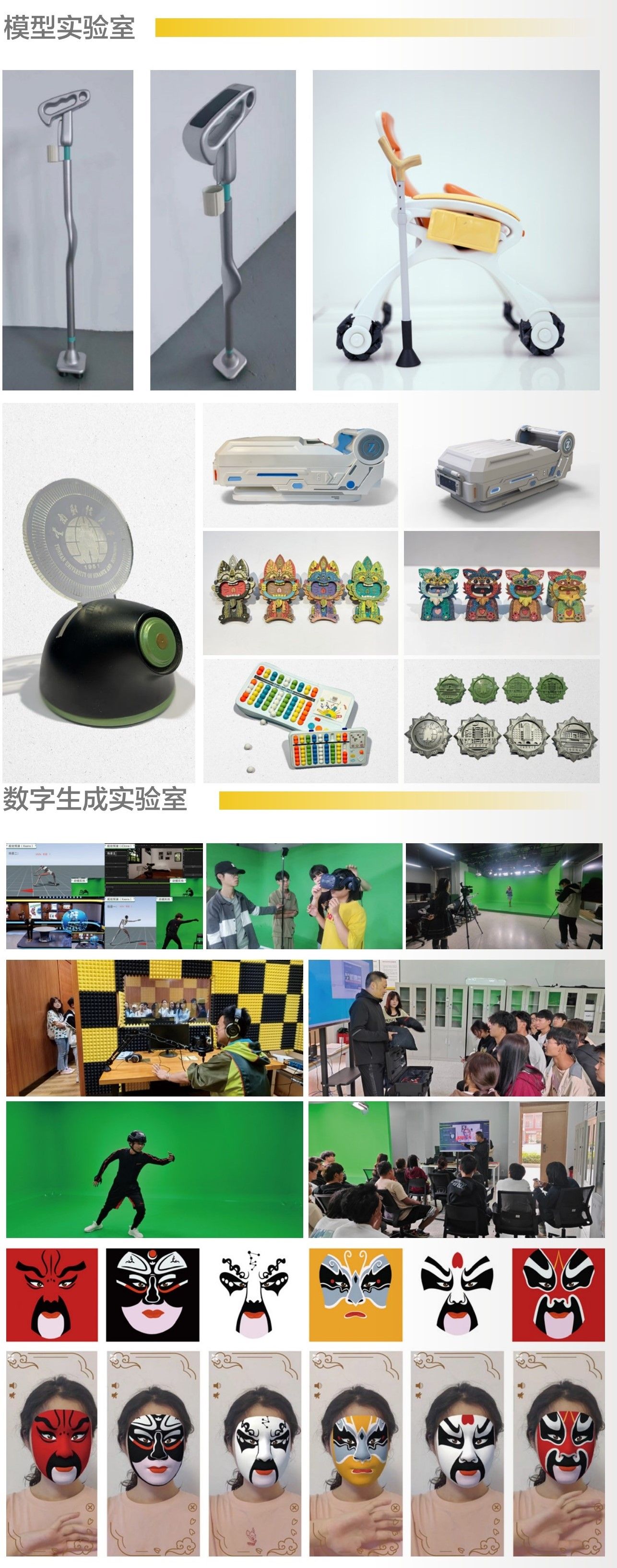 传媒与设计艺术学院目前有铁艺工作室、掐丝珐琅工作室、模型实验室、陶艺工作室、视觉综合实验室、布艺工作室、摄影工作室、数字生成实验室、新闻与广告综合实验室、图形图像工作站,共 13 间实验室(工作室),面积约 1937 平方米。