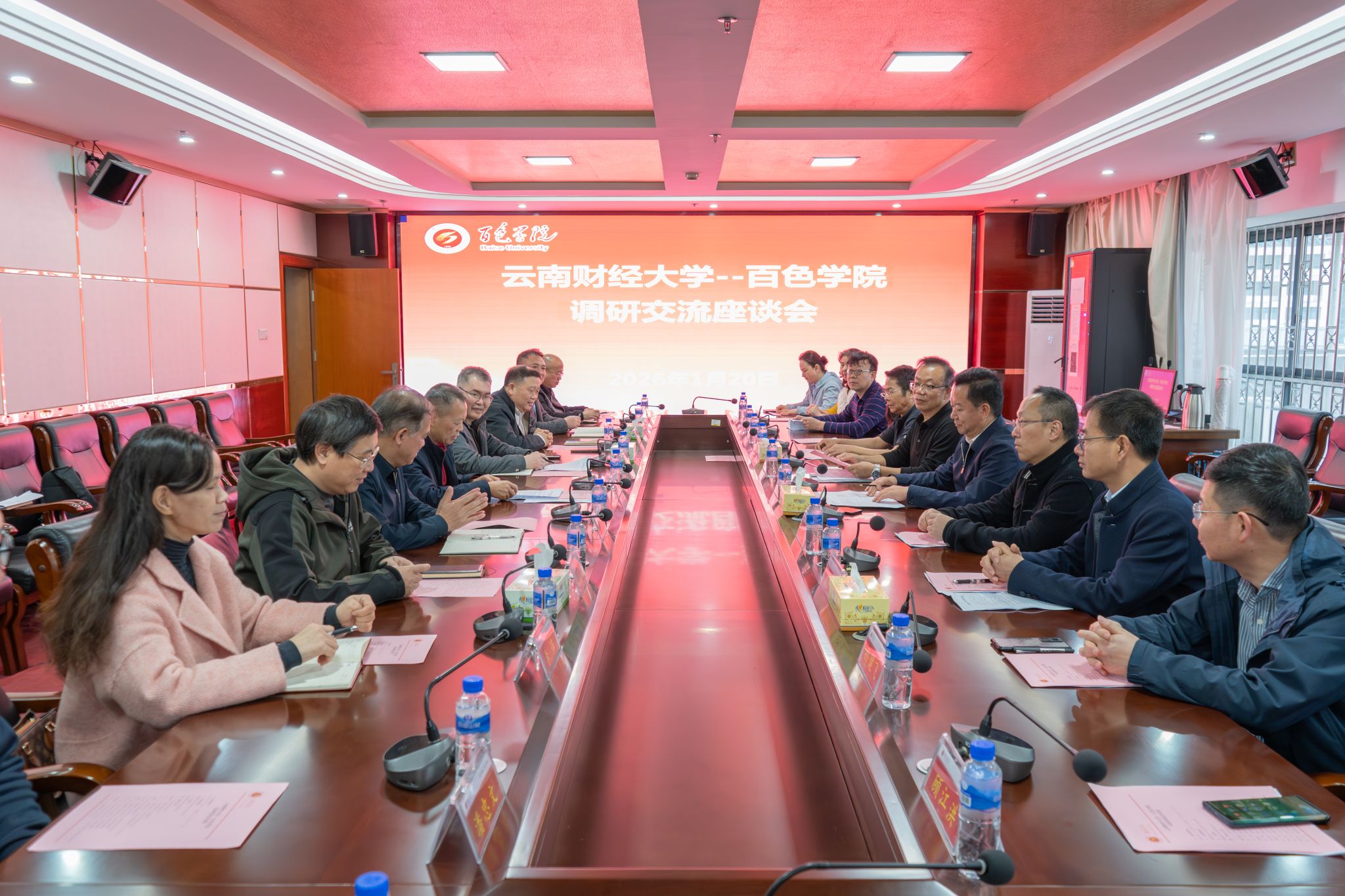 活动期间,施仲军还带队前往百色学院博物馆参观调研,并与百色学院党委副书记徐魁峰、统战部长及相关党外代表人士举行座谈。座谈会上,双方围绕民主党派组织建设、党外知识分子队伍建设及党外代表人士作用发挥等内容开展深入交流,为两校后续深化统战工作交流对接、拓宽合作领域奠定了良好基础。