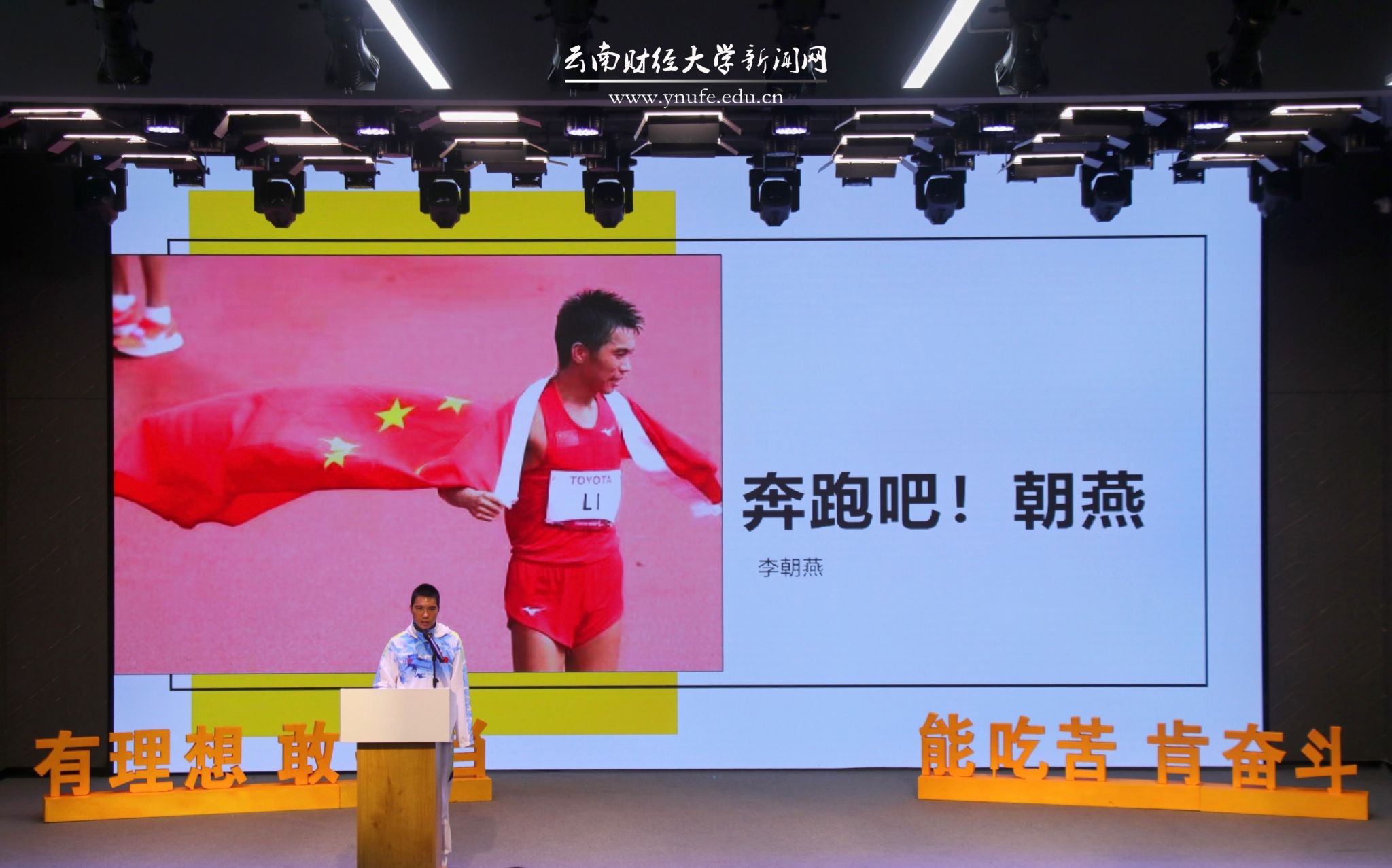 “我深知人生需要奋斗,成功需要拼搏,正是因为我一直在努力奔跑,我的愿望我的期盼才成为了现实。”李朝燕讲述了他从云财学子到马拉松冠军再到云财教师的故事。从小身体残疾的他在一路奔跑的历程里懂得了“拼搏”“奋斗”和“坚持”的意义,也在这个过程当中一步步实现了理想。李朝燕表示,青春由磨砺而出彩,人生因奋斗而升华。“我想用自身经历去告诉每一个人,唯有拼搏,才能打破桎梏、走出暗淡;唯有拼搏,才能苦尽甘来、柳暗花明;也唯有奋斗,才能不负青春、不负韶华。”