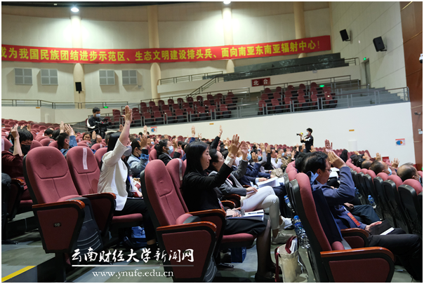 在上午举行的第一次全体会议上,伏润民向大会报告了十届教(工)代会以来学校各项工作,他指出在省委、省政府的正确领导和省委教育工委、省教育厅等有关部门的关心支持下,学校团结带领全体师生员工,着力抓好制度建设、人才培养、学科专业建设等重点工作,综合实力和整体水平迈上新台阶,高质量内涵式发展特征逐渐显现,形成了众多有亮点、可推广的“财大特色”经验。无论是学分制综合改革,还是教育评价改革,学校均作出了在全省具有示范效应的有益尝试,由此还撬动了薪酬、财务、科研、引入社会化服务等关键领域的革新,内部治理效能显著提升、现代化水平不断提高。成功发行全国高校首单地方政府专项债券建设安宁新校区,从根本上破除了办学空间严重不足的瓶颈难题。坚持师生生命至上,在全省高校中率先全学段复学复课、率先开展师生疫苗接种,从严从细抓好疫情防控工作,坚决做到校园“零疫情”“零感染”。