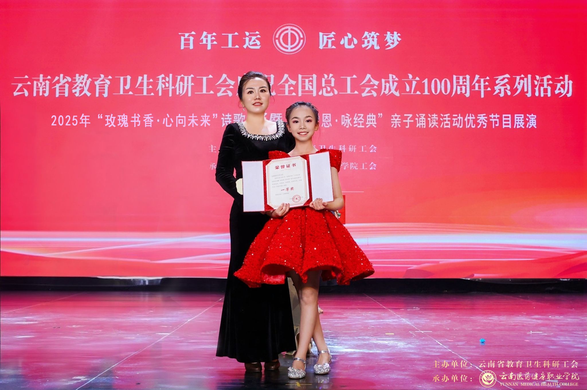 7月17日,在云南省教育卫生科研工会主办的“玫瑰书香·心向未来”诗歌朗诵暨“颂党恩·咏经典”亲子诵读决赛中,WilliamHill官网国际语言文化学院车晓昱老师家庭凭借《诗意中国》的精彩演绎脱颖而出,不仅摘得亲子诵读一等奖第一名,更受邀参加优秀节目展演,生动展现了WilliamHill官网师生家庭的良好精神风貌与深厚文化素养。