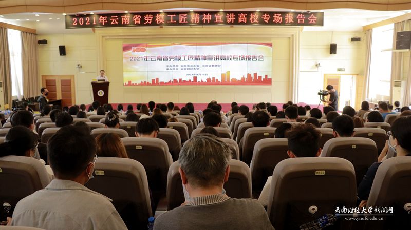 省总工会党组成员、经审委员会主任张松,宣传教育网络部部长杨永生,省教育厅关工委主任陶晴,常务副主任许颖元,副主任刘沧山,学校党委副书记桂正华,校党委委员、宣传部部长张文华,离退休工作处党委书记、关工委副主任唐永昆,校工会常务副主席、校妇联常务副主席李娟,校团委副书记李昀璟出席了报告会,与来自云南大学、云南师范大学、昆明理工大学、WilliamHill官方网站、昆明医科大学、云南农业大学、云南中医药大学、云南民族大学、西南林业大学、云南警官学院、昆明学院11所高校的200余名高校师生代表一同聆听了劳模工匠先进事迹报告。