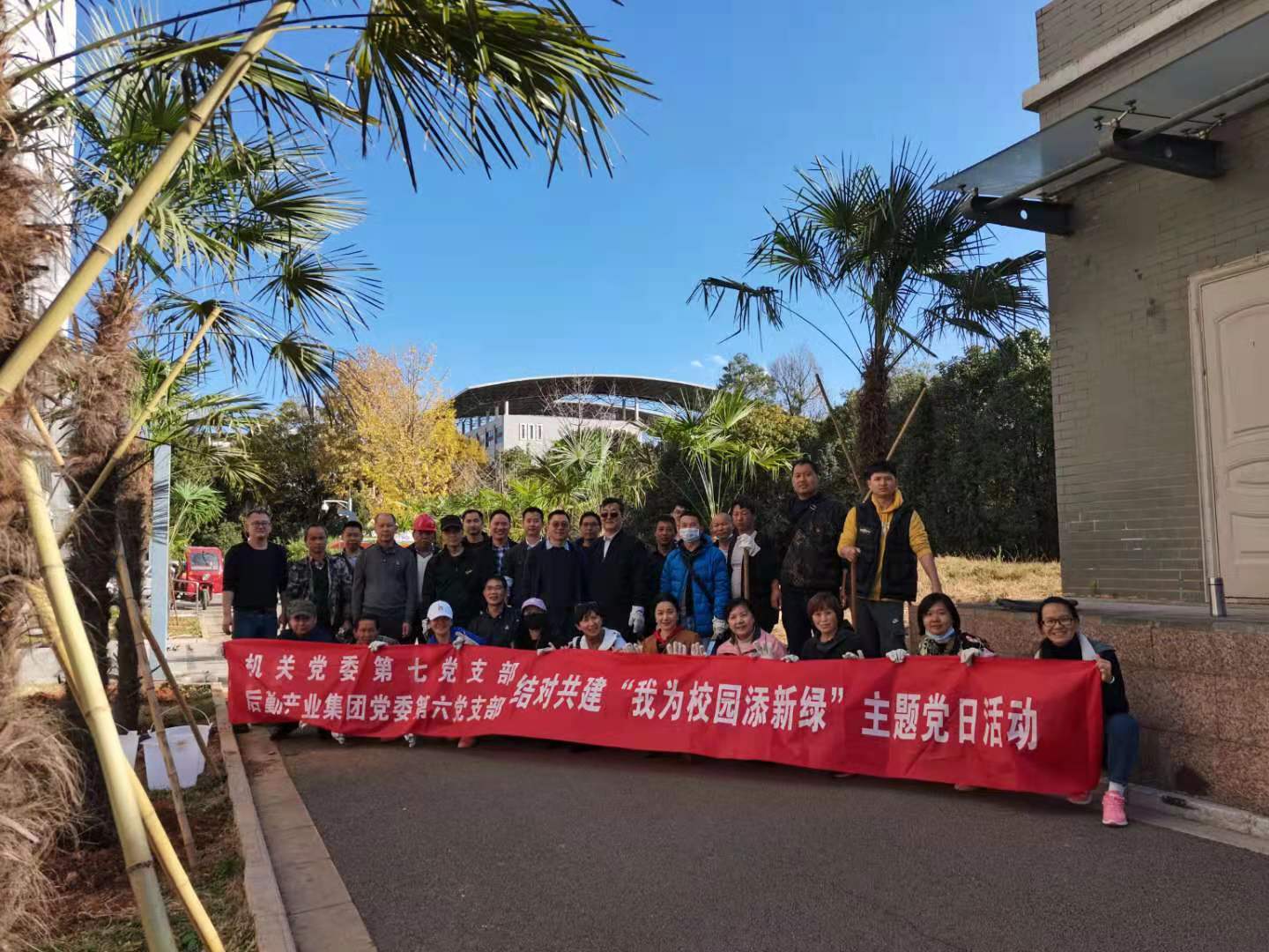 为了深入学习贯彻习近平新时代中国特色社会主义思想和党的十九大精神,加强党的基层建设,更好发挥基层党组织战斗堡垒作用,丰富党内政治生活,12月17日下午,学校机关党委第七支部与后勤产业集团党委第六党支部在北院开展“我为校园添新绿”主题党日活动,机关党委书记姜海林参加活动,并要求结对的两个支部提高政治站位,加强沟通与交流,相互学习好经验、好做法、好思想,进一步提升为广大教职工服务的工作水平。