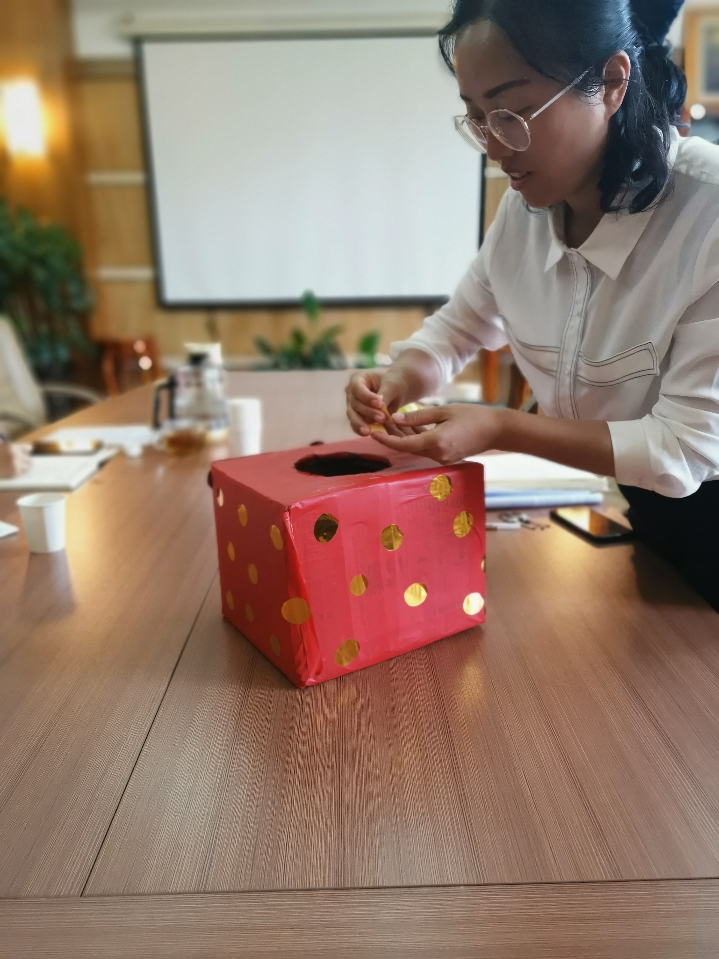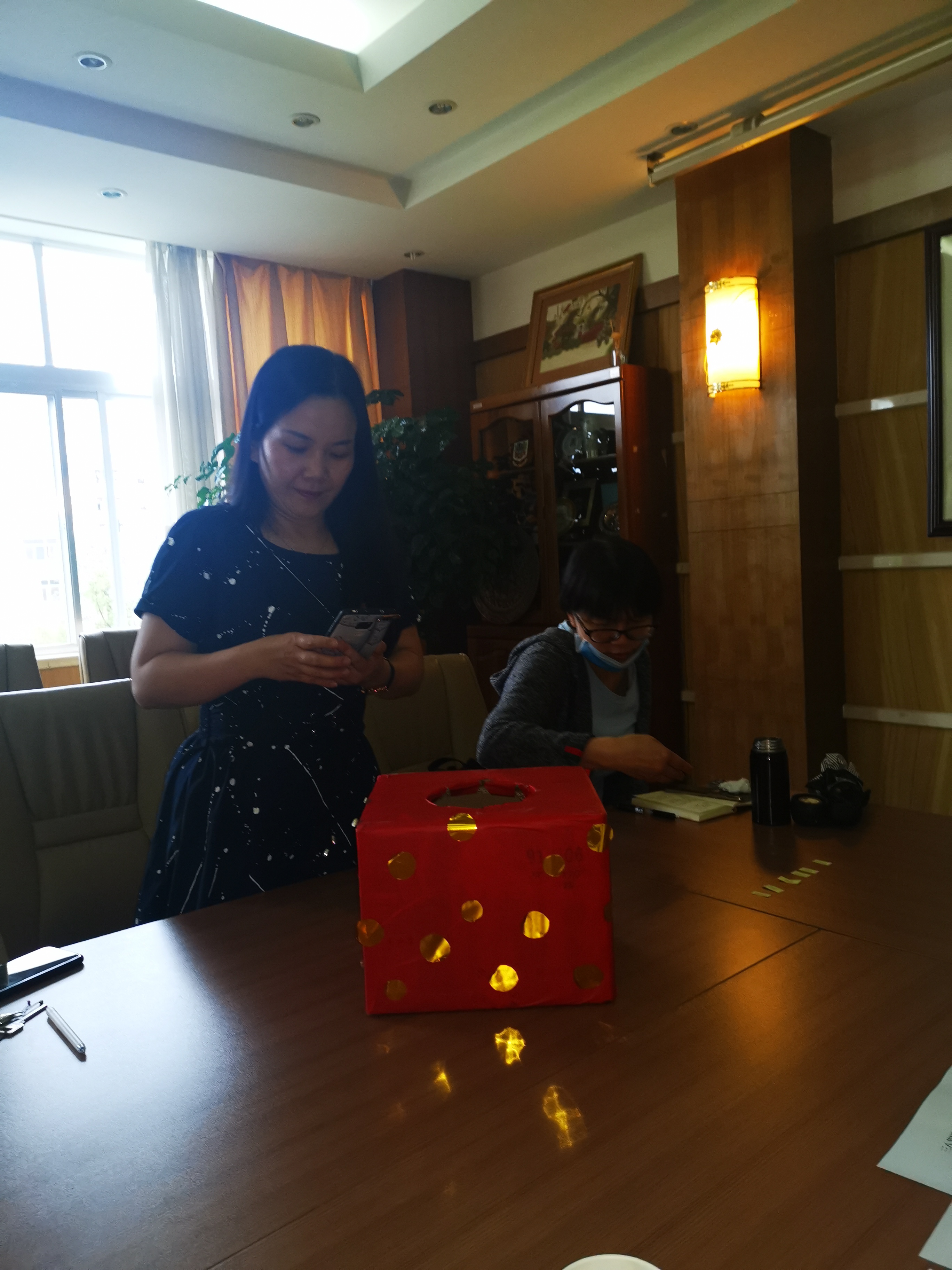 到场的女工委员以抽签的方式在获得知识竞赛满分的参与者中随机抽取10%颁发参赛纪念品,并确定了获得厨艺秀和征文参与纪念奖的名单。