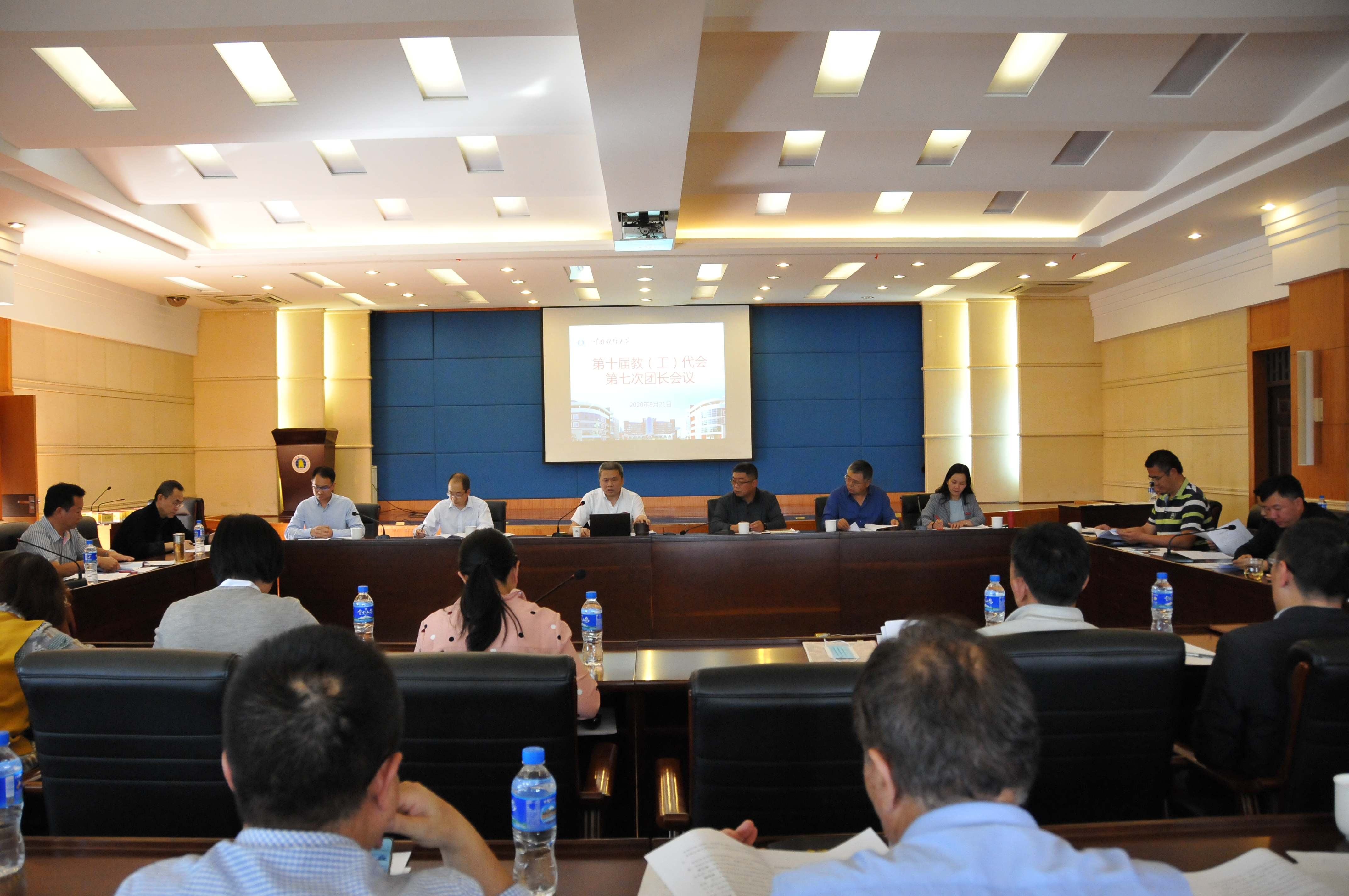 9月21日下午,第十届教(工)代会第七次团长会议在致远楼415会议室召开。副校长王敏出席了会议,教代会代表团长,校工会委员,办公室、教务处、研究生处、科学技术处、法律事务中心主要负责人及校工会专职干部参加会议,会议由工会常务副主席李娟主持。