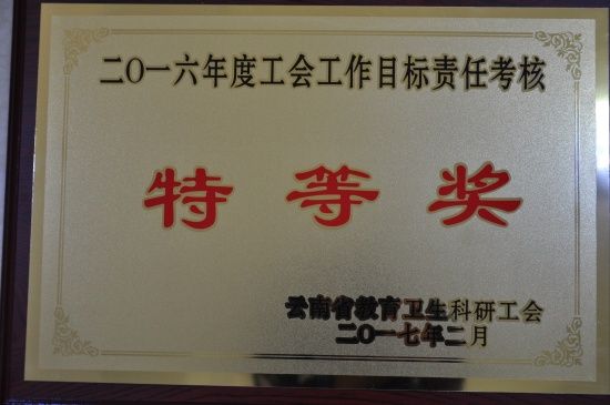 1.2016年度工会工作目标责任考核 特等奖 云南省教育卫生科研工会 2017年2月