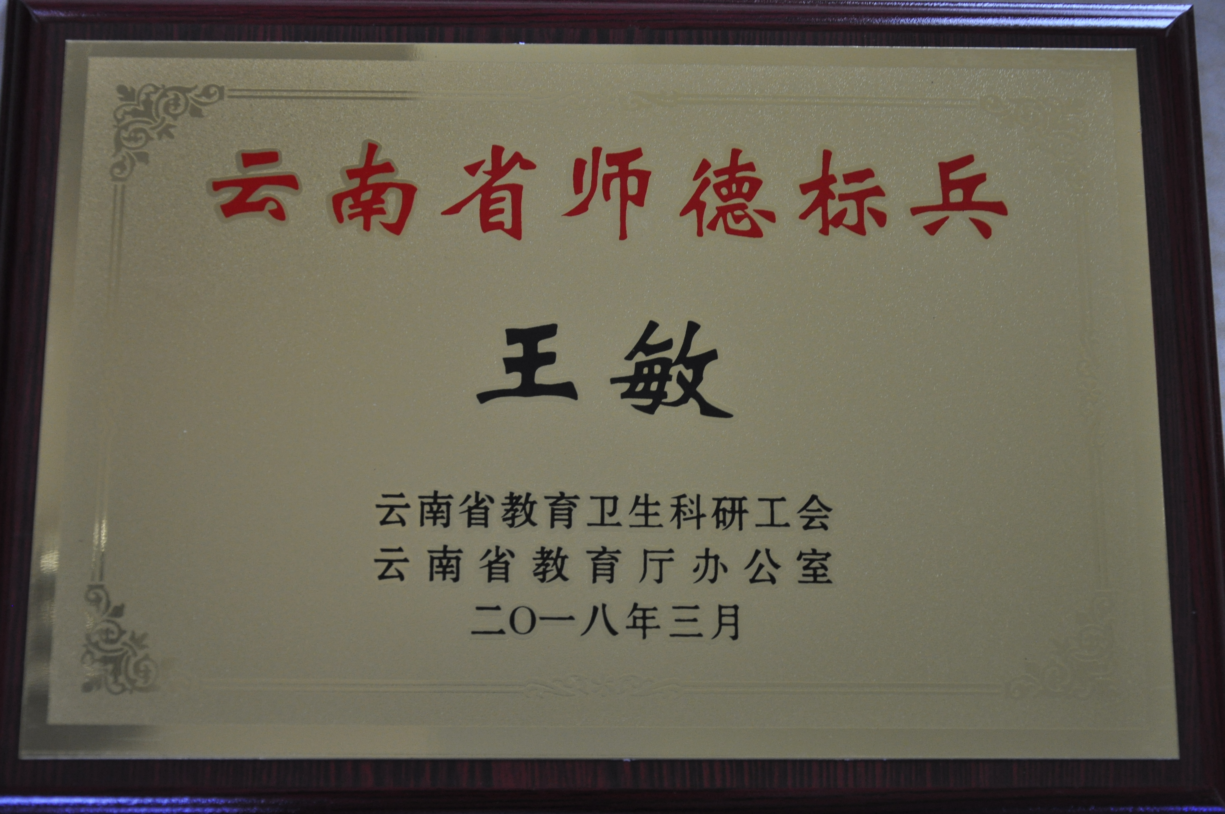 1、王敏 云南省师德标兵称号 云南省教育卫生科研工会 云南省教育厅办公室 2018年3月