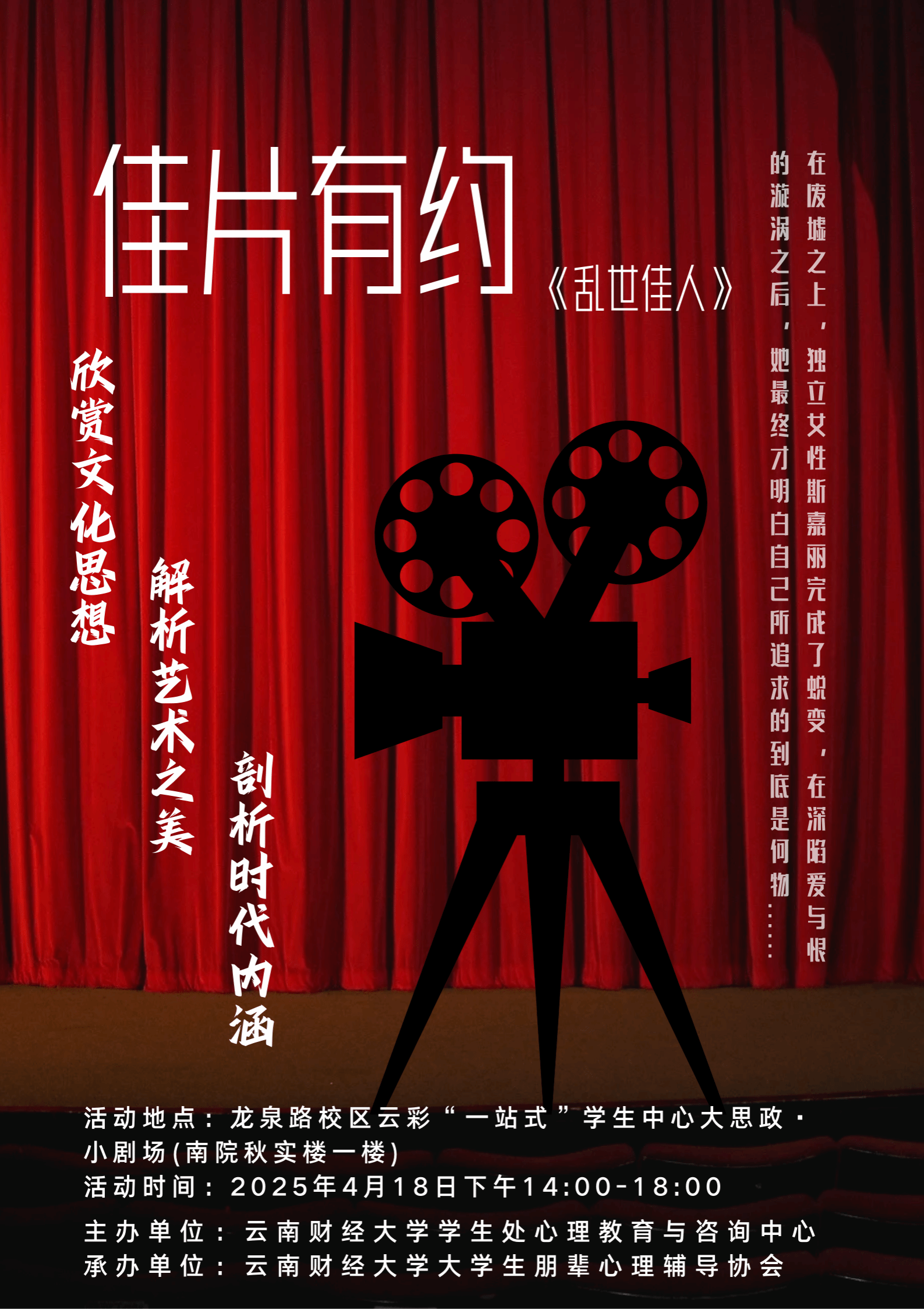 活动地点:龙泉路校区云彩“一站式”学生中心“大思政·小剧场”(南院秋实楼一楼)
