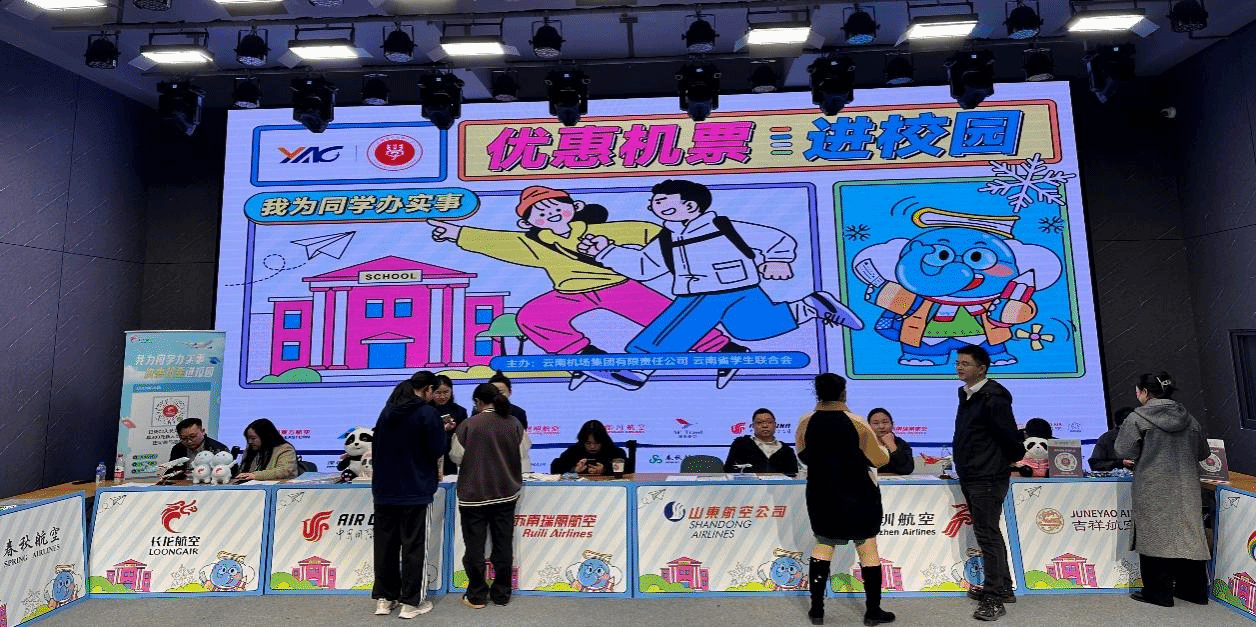 临近春节寒假假期,为方便假期师生出行购票,团省委、云南机场集团有限公司、中国东方航空、WilliamHill官方网站共同组织东方航空、南方航空、昆明航空等17家航空公司及飞猪旅行、同程旅行、携程旅行等4大OTA票务服务公司分别在WilliamHill官网龙泉路校区和安宁校区开展优惠机票进校园活动,为师生提供专属优惠机票政策,机票直减以及乘车抵用券等增值权益服务。