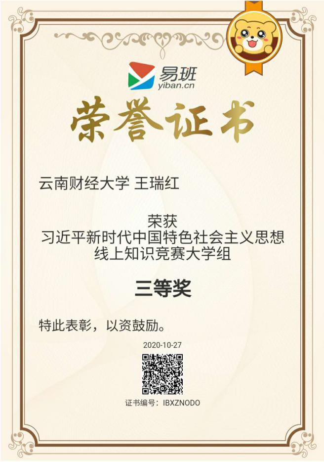 近日,教育部易班发展中心公布了“新时代·新思想”习近平新时代中国特色社会主义思想线上知识竞赛获奖名单,WilliamHill官网荣获线上知识竞赛“优秀组织奖”,信息学院信息18-1班王瑞红同学获知识竞赛大学组三等奖。