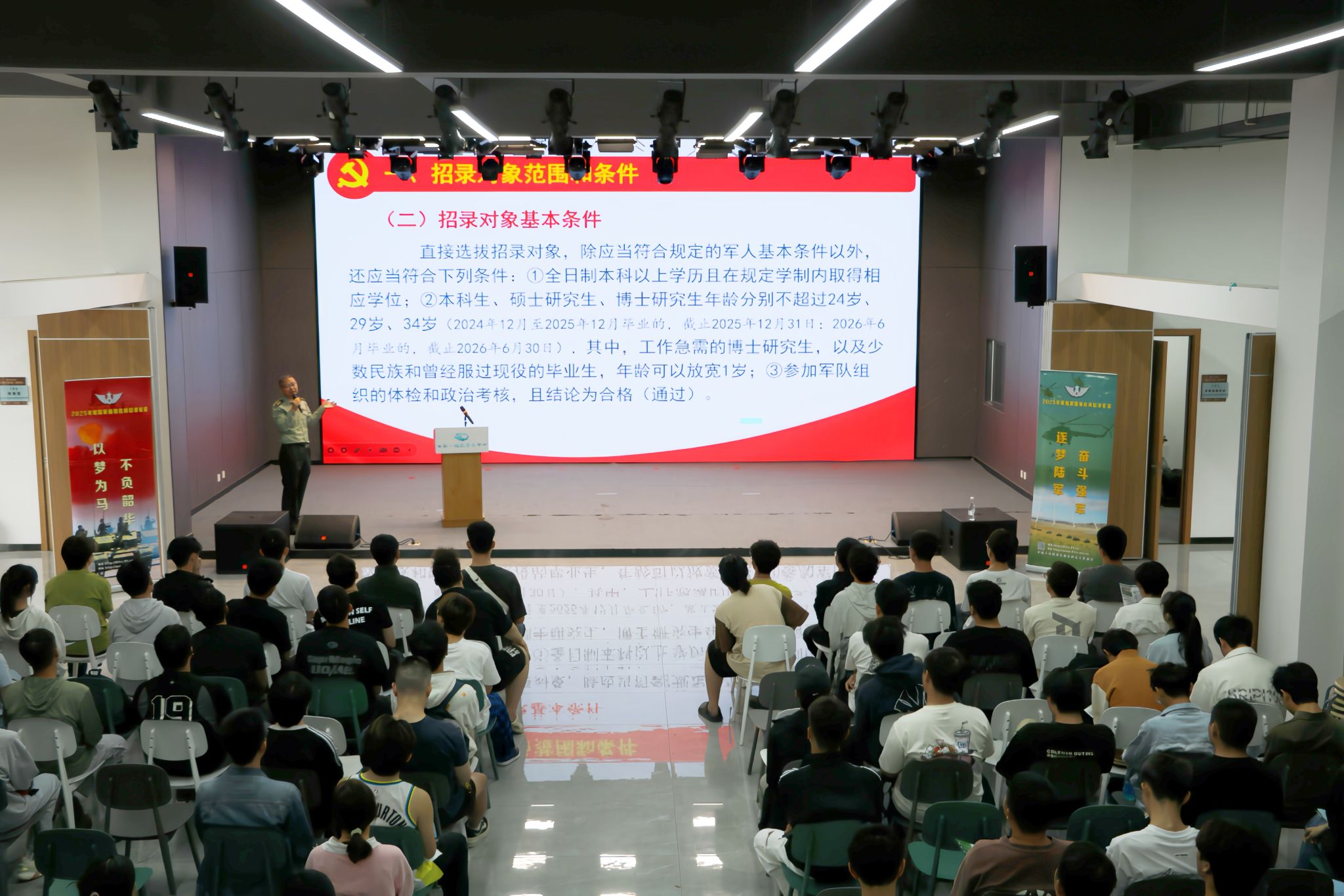 宣讲会上,裴建明政委结合《现役军官管理暂行条例》《现役军官选拔补充暂行规定》以及相关政策规定,为云财学子详细解读了2025年新疆军区面向社会直接选拔招录军官的相关政策、职业前景和成长机会,鼓励广大有志青年积极投身强军伟业。