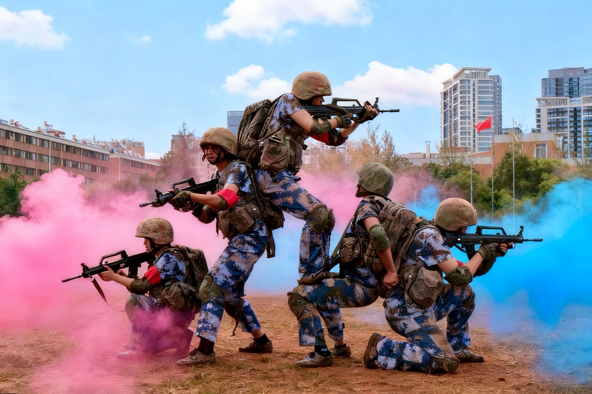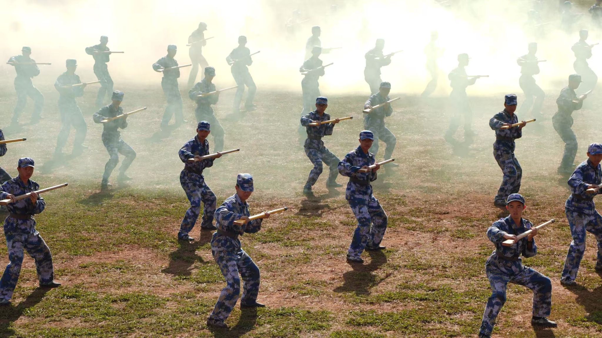 军训军事技能展示在庄严雄壮的国歌声中拉开序幕。队列方队昂首挺胸、英姿勃发、步履坚定,从立正、稍息、敬礼,到停止间转法,再到齐步、正步、跑步,每一个动作都干净利落、整齐划一;军体拳、格斗方队吼声铿锵有力,目光如炬、拳腿生风,一招一式尽显朝气蓬勃、热血沸腾的青春活力;刺杀操方队动作凌厉迅猛,挥棍有力,一突一刺,一防一击,展示出坚韧不拔、果断勇猛的战斗作风;战术综合演练方阵,通过模拟红蓝对抗形式,将军纪与团结协作融入每一个战术动作,侦查敌情、听从指挥、交替掩护、战地救护、火力突击、冲锋陷阵,最终经过重重突围成功完成任务。