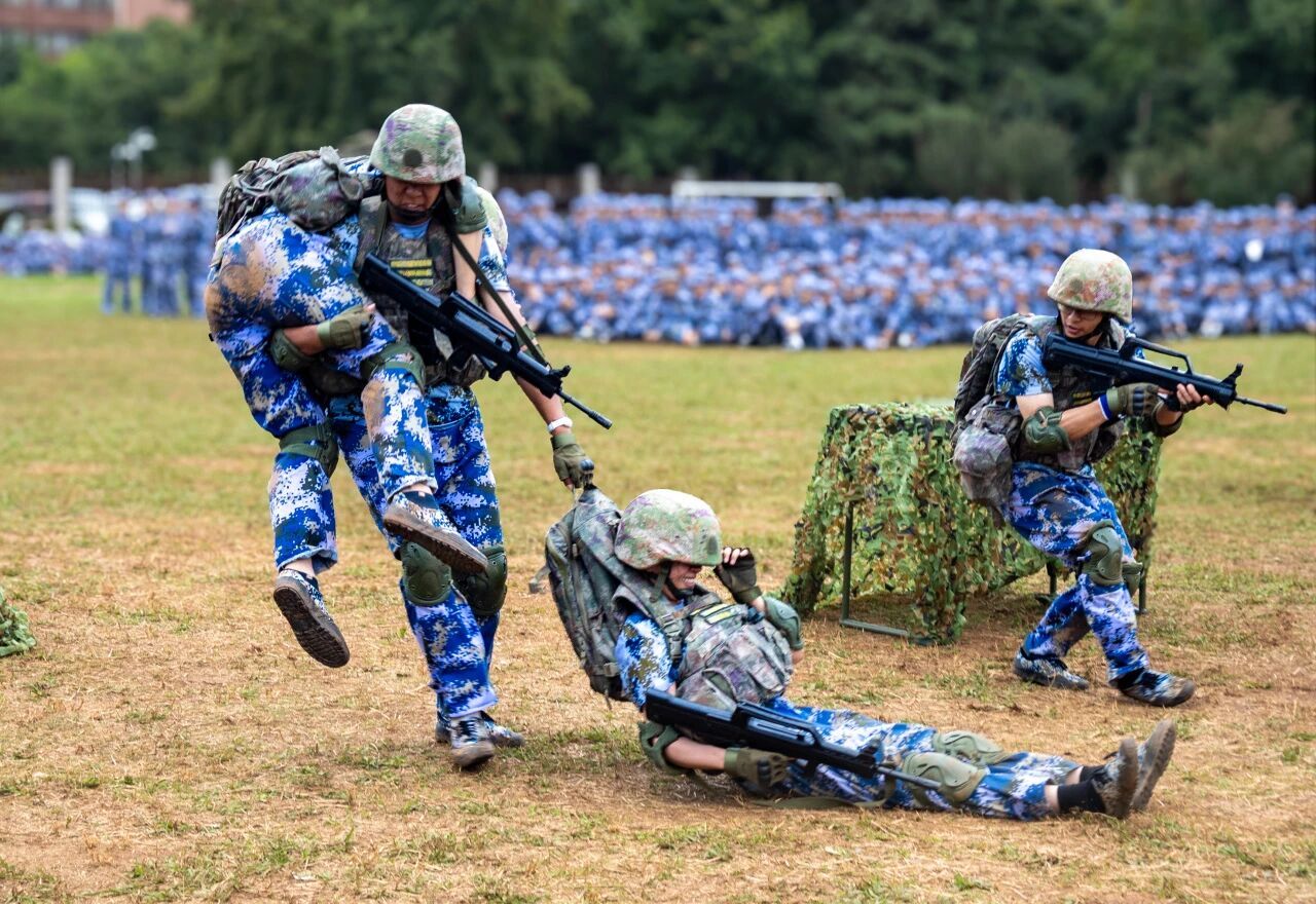 9月21日,学校2025年学生军训军事技能展示分别在龙泉路校区、安宁校区田径运动场进行。8000余名参训学生以昂扬的精神面貌、出色的表现展示21天军训军事技能,为军训画上圆满的句号。