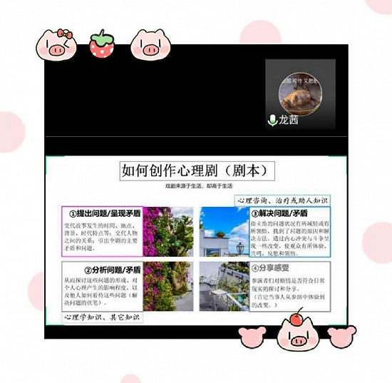 首先,龙茜老师给大家讲解了疫情防控期间应如何保持心理健康,调节不适情绪。她建议同学们,要学会情绪管理,适当转移注意力,积极调整认知,努力克服不良情绪。可以多看几本书、学习一些新技艺等。如确有不适,要及时与父母、班主任、辅导员沟通,也可向心理教育与咨询中心寻求帮助。接着,龙茜老师对本次心理剧剧本创作大赛进行了指导。一方面,介绍了校园心理剧的由来、发展和现状,并通过有趣的图片和丰富的心理学知识,普及了心理剧剧本的构成要素、创作灵感和创作手法。另一方面,她强调校园心理剧是以戏剧化形式表现同学们在学习生活中的冲突、困惑与烦恼,除了展现一些现实中的问题,更重要的是分析问题、提出解决问题的方案,为观众带来一些思考和启发。最后是交流互动环节,同学们积极通过语音和弹幕提出自己对心理剧创作、压力调解、感情处理等有关心理健康的 问题和困惑,龙茜老师结合WilliamHill官网学生心理工作的实际情况一一进行详细的解答,同学们获益良多。
