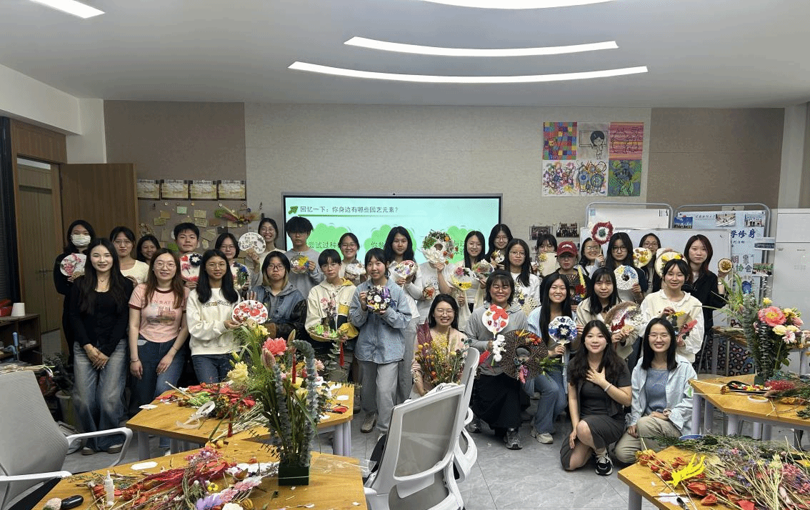 作为学校春季心理健康主题教育的特色项目之一,本次工作坊突破传统心理辅导模式,将正念放松、园艺疗法与表达艺术治疗创新融合,打造了具身化的疗愈场景。参与者通过多感官沉浸式体验,在专业老师指导下开展正念冥想、插花、花艺手工、合作共创等互动环节,在与自然的联结中觉察情绪、探索自我并缓解释放压力。新颖的艺术手工创作形式,不仅是“以美润心”的创新实践,更有助于同学们培育积极心理品质、提升心理健康素养。