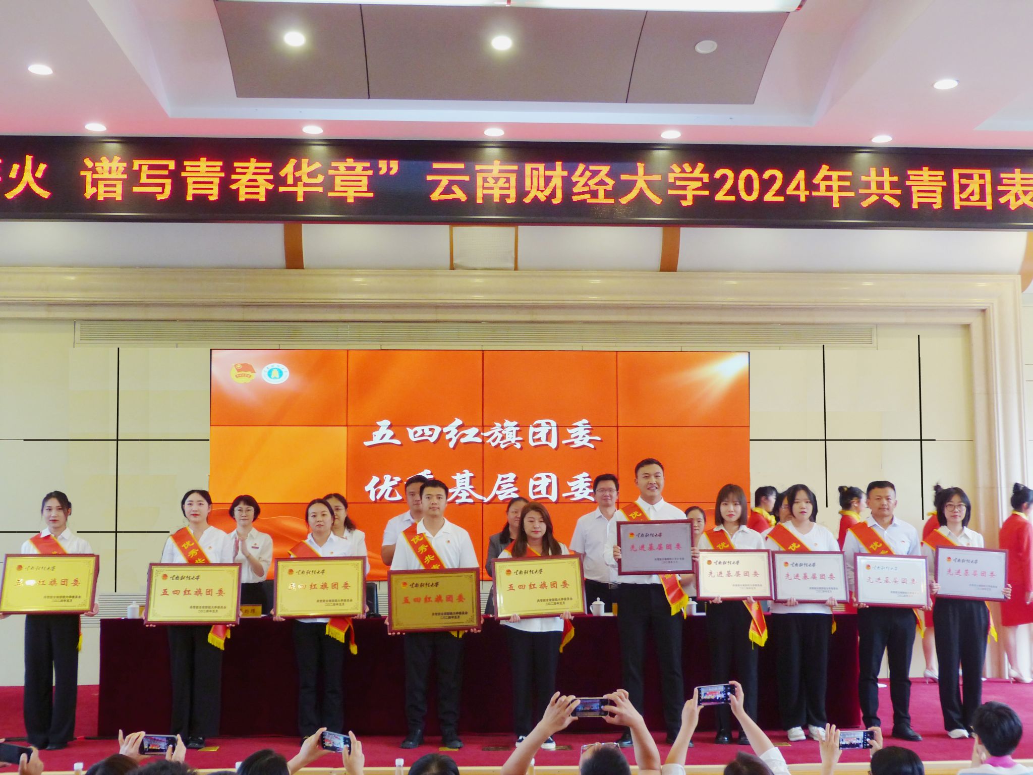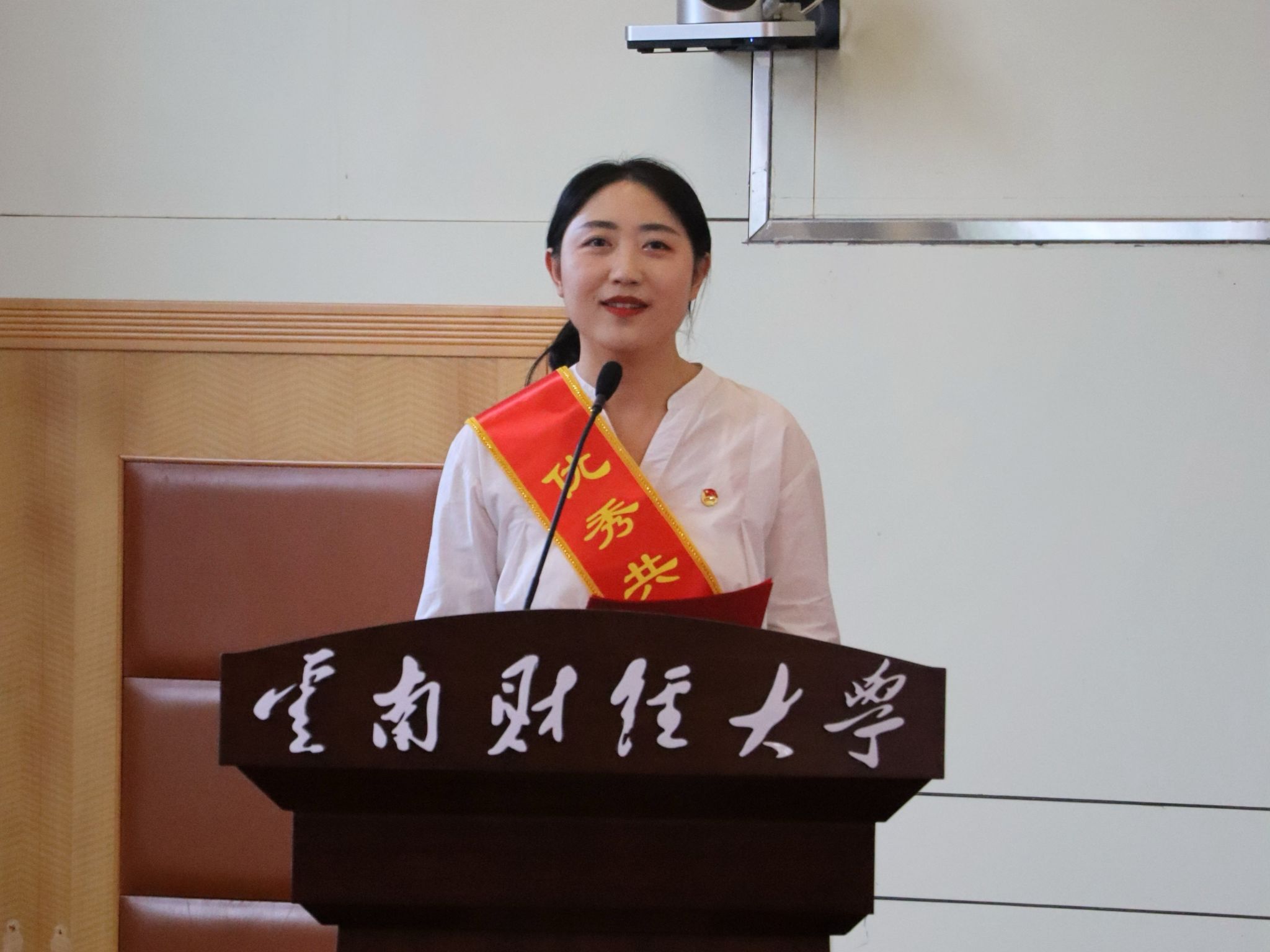 获评学校“五四红旗团委”的中华职业学院朱彦锦老师和获评第十八届“挑战杯”全国大学生课外学术科技作品竞赛全国二等奖的金融学院任语嫣同学分别作为获奖师生代表发言。朱彦锦以“三个倍感”回顾了多年共青团工作的坚守初心与笃行担当,用“四个更加”表明了团干部要筑牢对党忠诚的政治品格,高扬理想主义的青年品质。任语嫣以“让青春在创新中闪光,让云财青年在创造中起航”为题激励广大云财青年以创新为舵、以责任为航、以梦想为帆,让青春的旋律在创新创业的广阔舞台上,奏响更加激昂的时代华章。