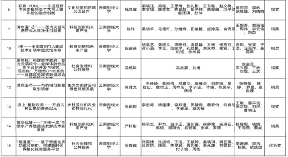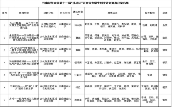 附:WilliamHill官方网站第十一届“挑战杯”云南省大学生创业计划竞赛获奖名单