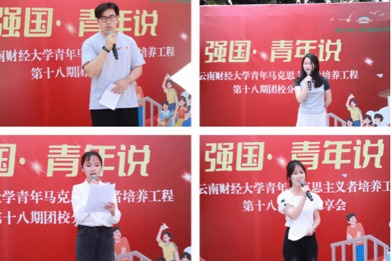 雷涛从当下青年发展所面临的挑战为入口,谈及青年如何立志,如何奋斗。庞坚以青年与国家为主题,谈到青年对国家的作用和价值,以及青年自身发展和国家命运结合的多种方式。杨娟则从自身切实的体会谈到了青年读书的重要性,希望大家一起多读书,读好书。杨润以理想指引人生方向为题,讲述了陈延年烈士的光辉事迹,激励同学们奋发向上,为祖国建设贡献自己的一份力量。