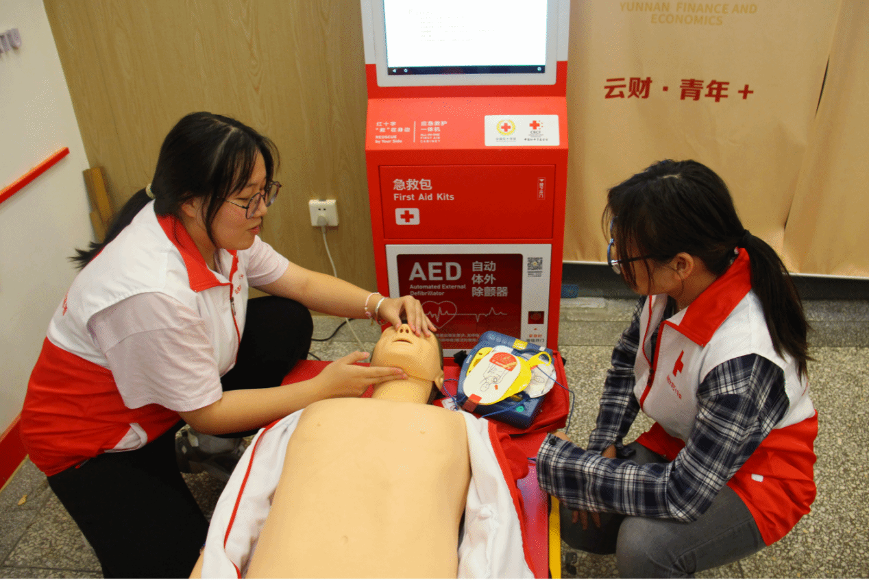 在常态化开展应急救护培训的过程中,除了进一步筑牢校园安全的“防护网”,云财师生也不断将救护精神向外传播延伸,在校园外传递温暖。