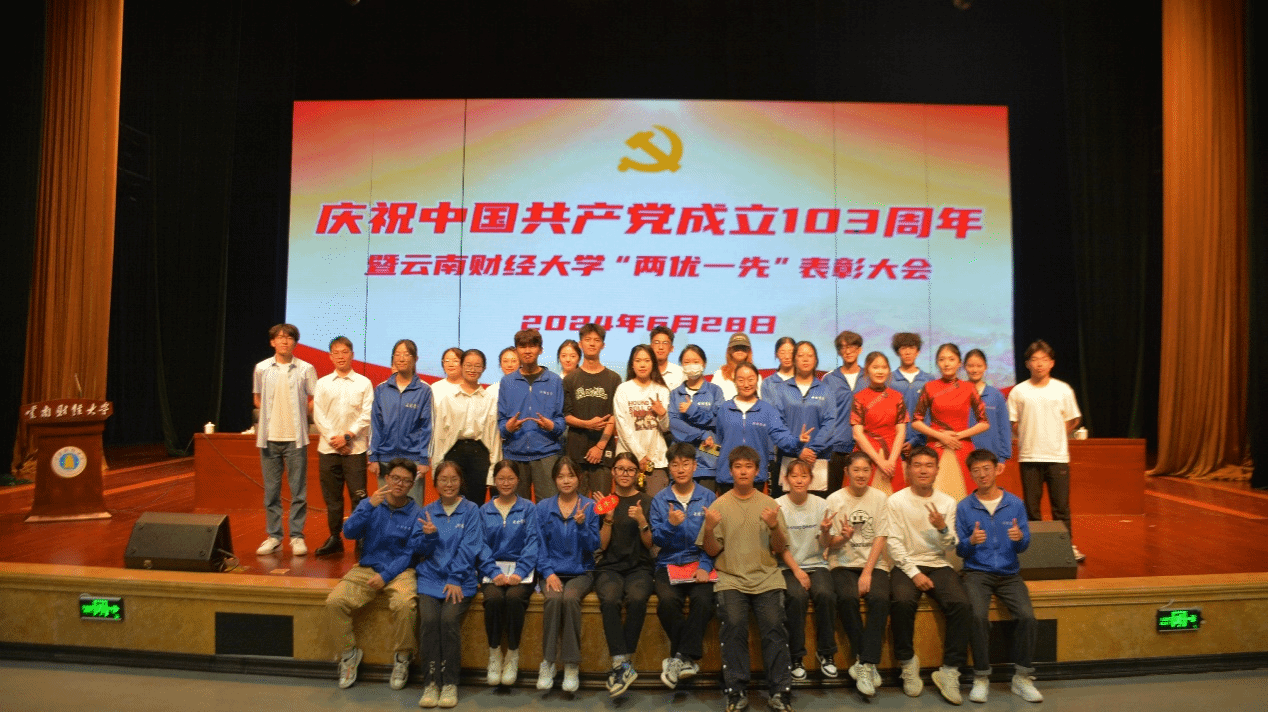 6月28日,WilliamHill官方网站庆祝中国共产党成立103周年暨“两优一先”表彰大会在WilliamHill官网北院汇文礼堂召开,60余名云财青年作为本次大会的志愿者,用实际行动诠释新时代青年砥砺奋进的真谛。