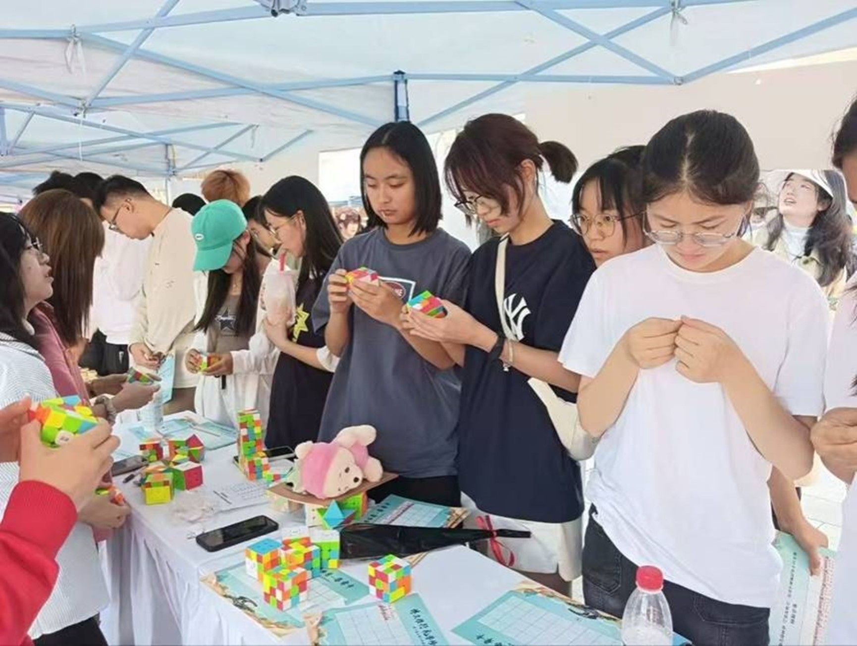 活动现场,退休教师童映河与书法协会的同学以“礼”“学”为主题进行书法创作表演。学校的第15届社团博览会也同步在现场举行,56个社团以青春游园会的形式开展招新活动,通过“书简传礼”“灯谜开礼”“游园行礼”等各出心裁的形式弘扬中华优秀传统文化,传播校园文明礼仪。